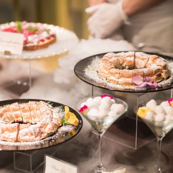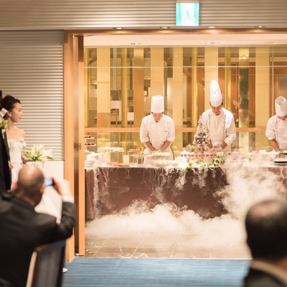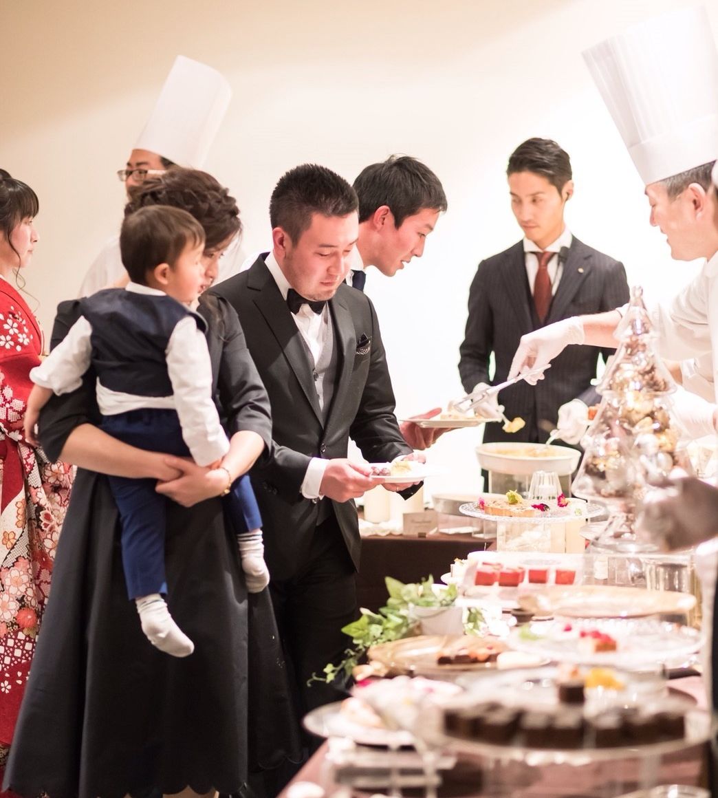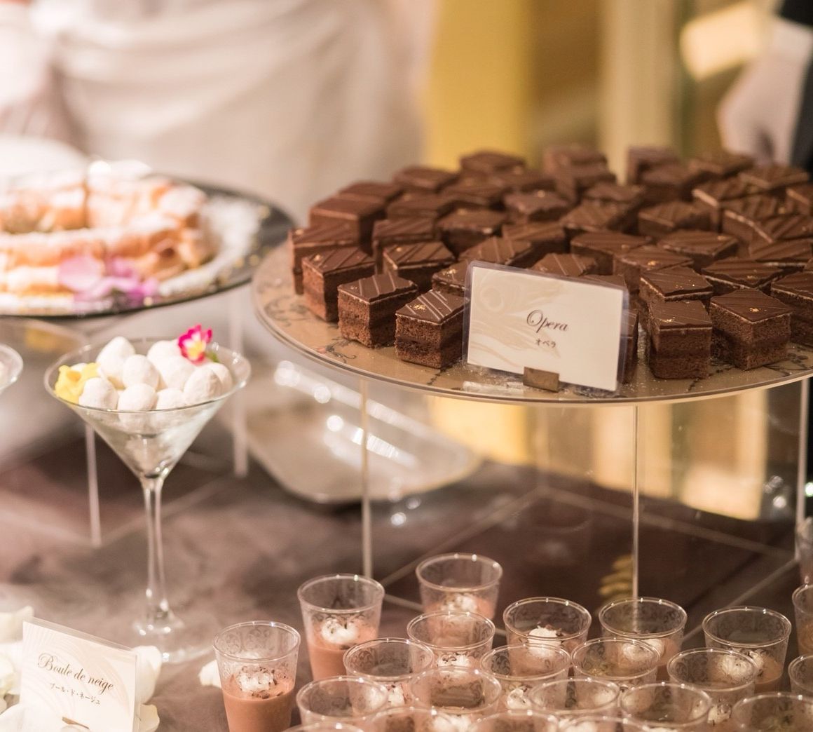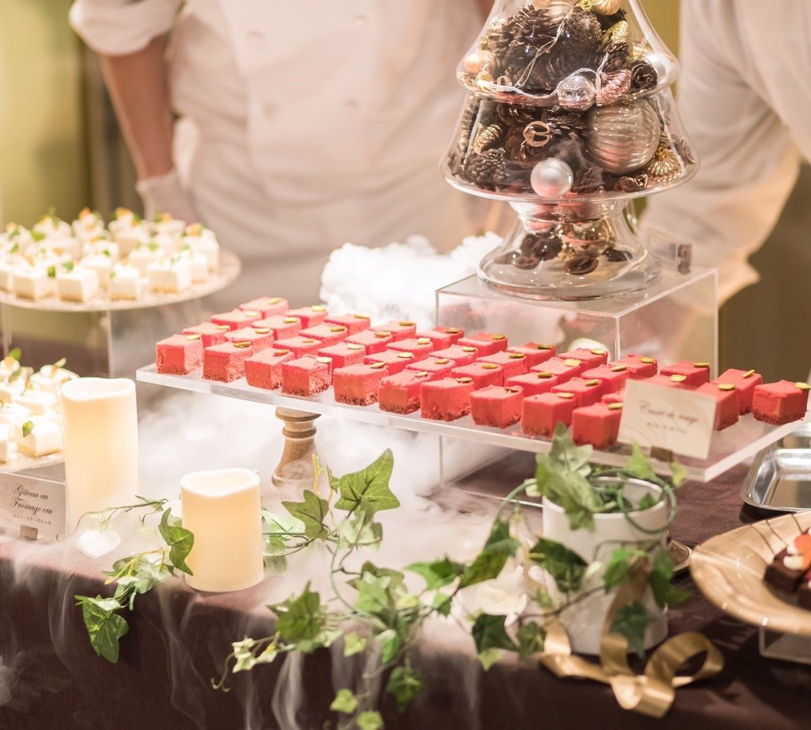 ウェディングケーキ、お料理、デザートビュッフェ