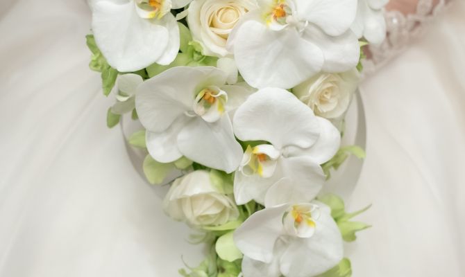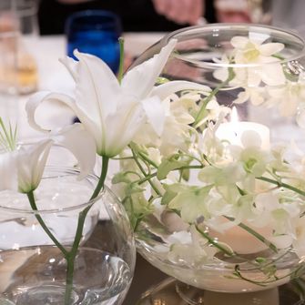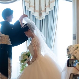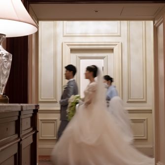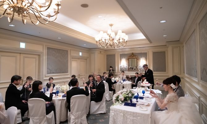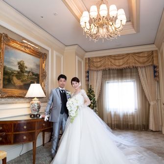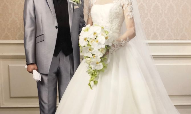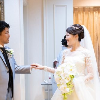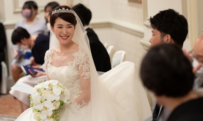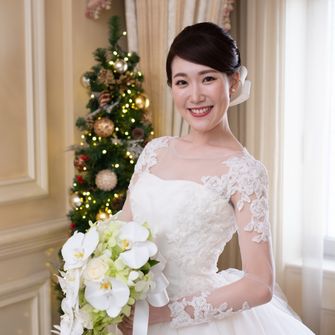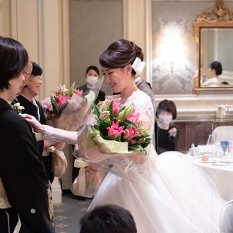 親族のみのアットホームな空間を意識しつつも、ホテル婚ならではの重厚感も取り入れました。自身のドレスもクラシカルさを出し、ブーケや装花に胡蝶蘭を取り入れることでより重厚感を出すよう意識しました。