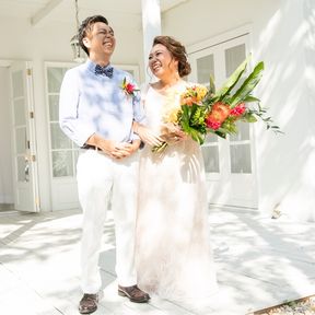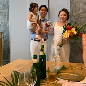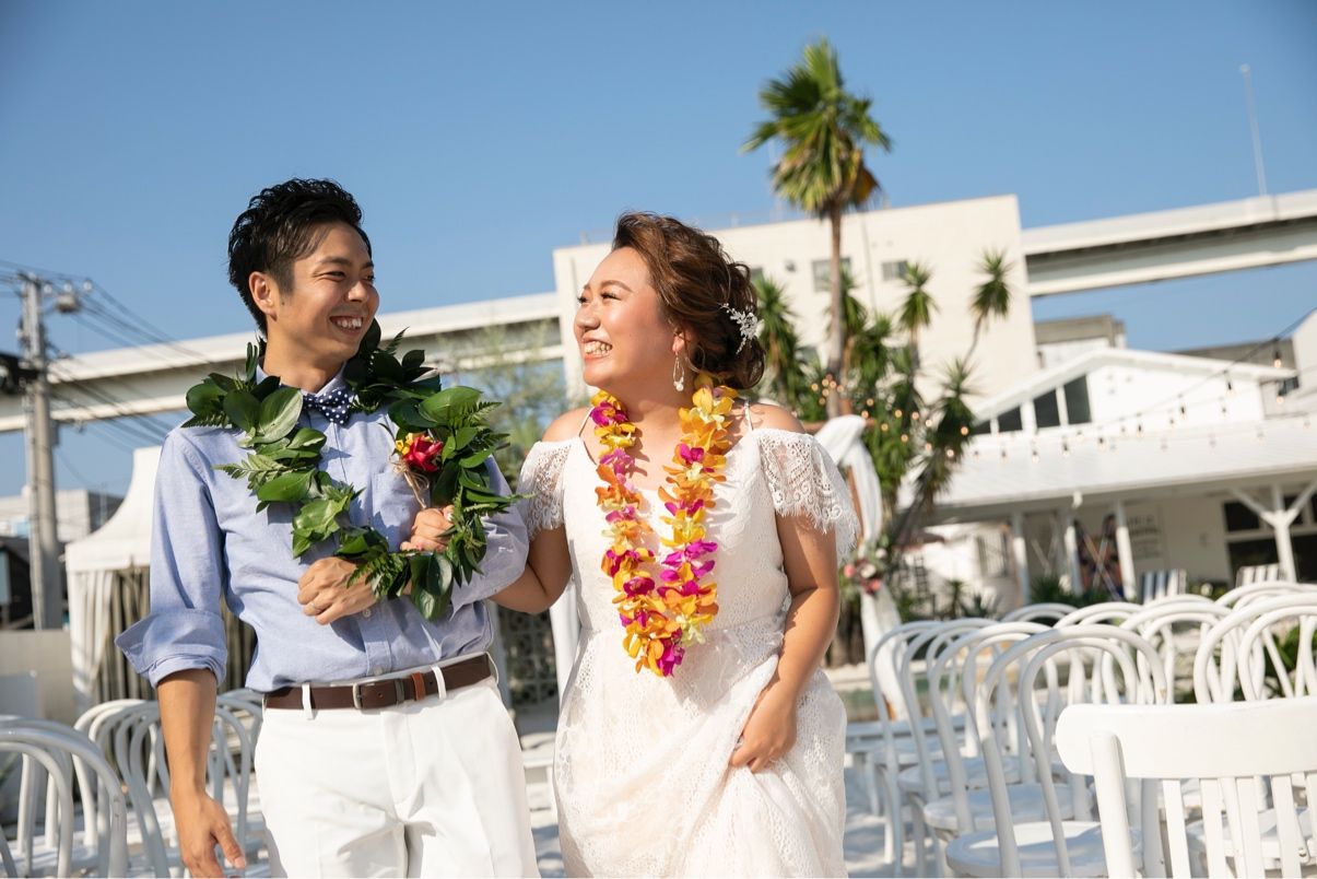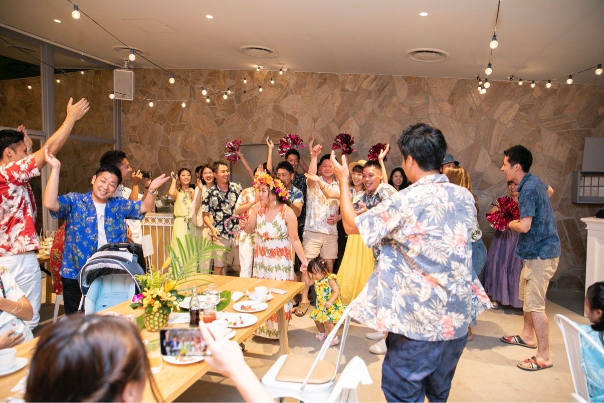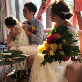 ゲストの人たちもスーツやドレスではなく、アロハシャツや、ハワイアンワンピース、リゾートワンピースにしてもらってとっても華やかな結婚式を挙げられました。