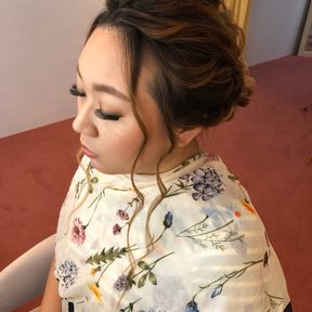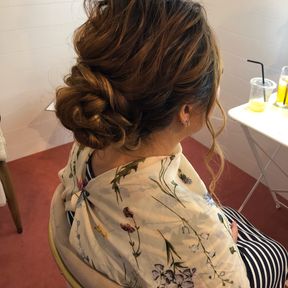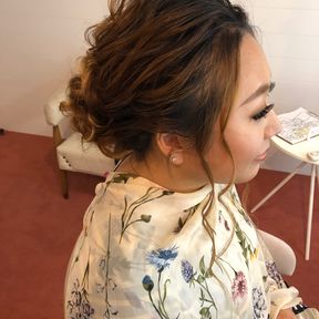 ヘアーは小顔に見えるように顔まわりに毛を出してもらいました。