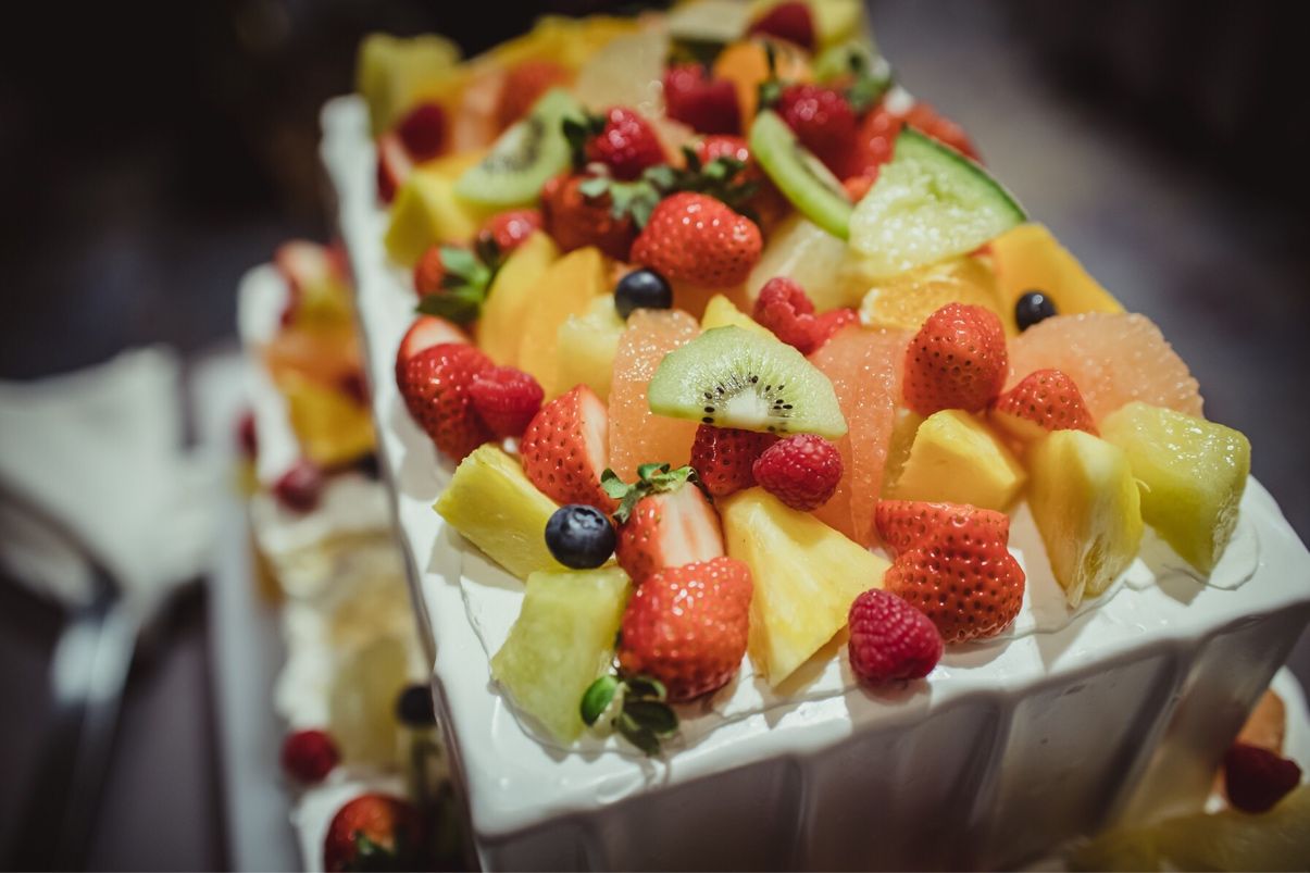 見た目でおいしそうなフルーツたっぷりのものにしました。