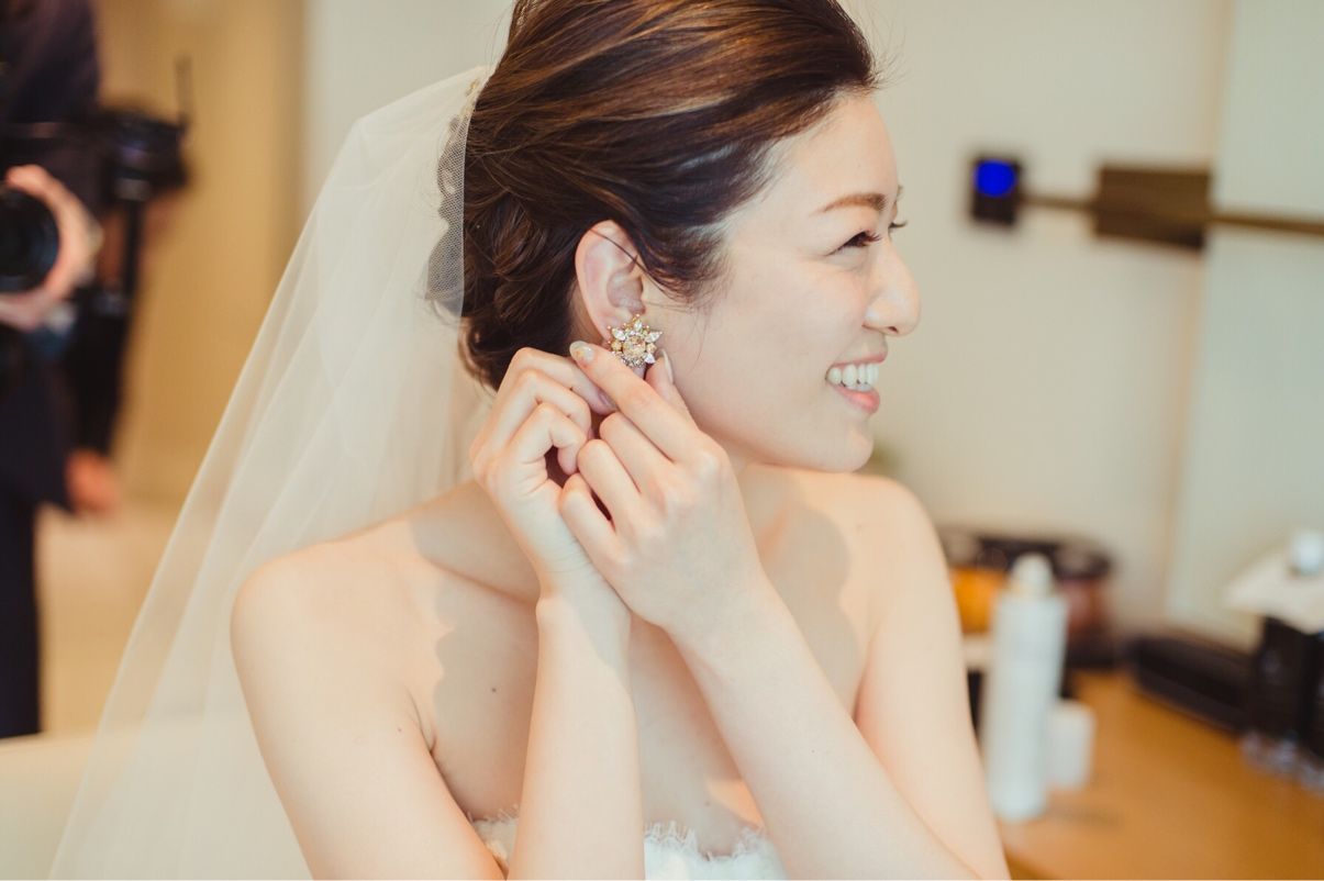 ヘアについては髪が長くはなかったので、お任せしました。1着目と2着目で印象が変わるようにはお願いしました。 メイクはリハ—サルの際に、好きな色味を伝え、あまり濃くしないようにお願いしました。