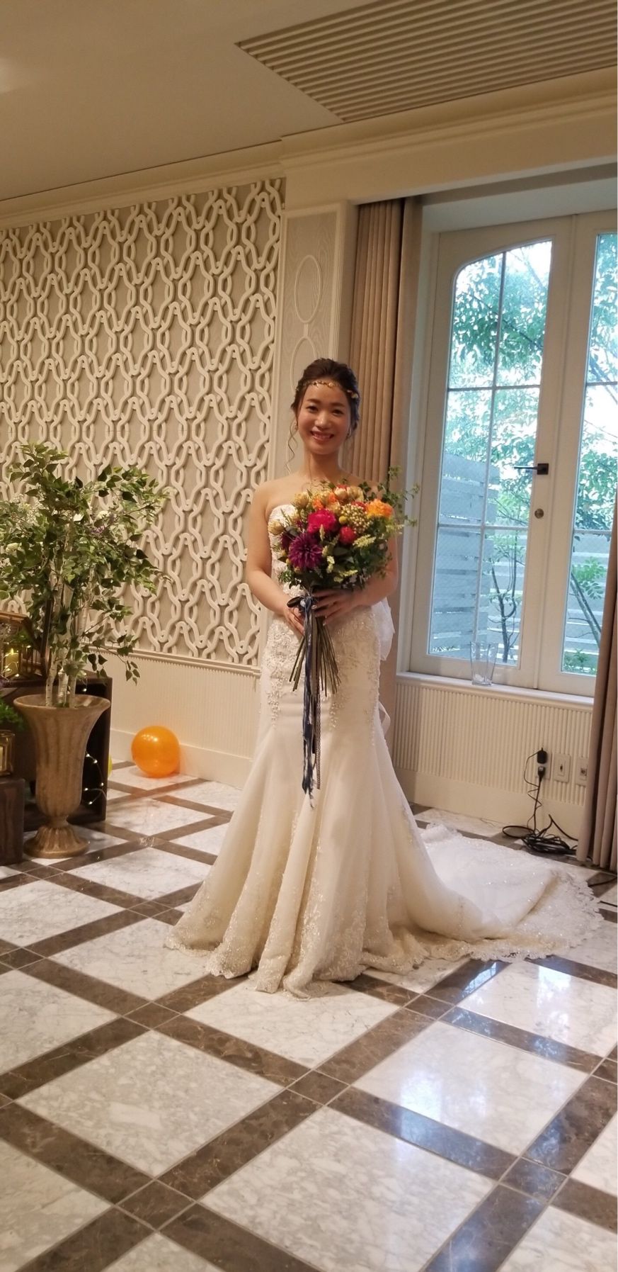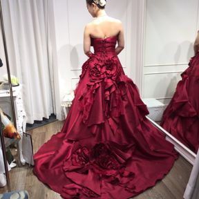 カラードレスは見た瞬間のデザインにひかれすぐに決まりました♪( ´▽`)