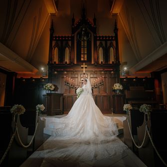 クラシカルでラグジュアリーな結婚式をテーマにしました。クラシカルな部分は、厳かなチャペルや和装で、ラグジュアリーな部分は、桂由美の記念ドレスや会場全体でイメージしました。歴史ある名古屋観光ホテルだからこそ、クラシカルでラグジュアリーな結婚式を挙げることができました。