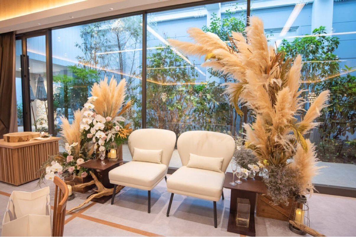 広すぎない会場でゲストの皆様との距離の近さを感じ、ガーデンに出て開放的な空間での時間も楽しめるところが素敵です!