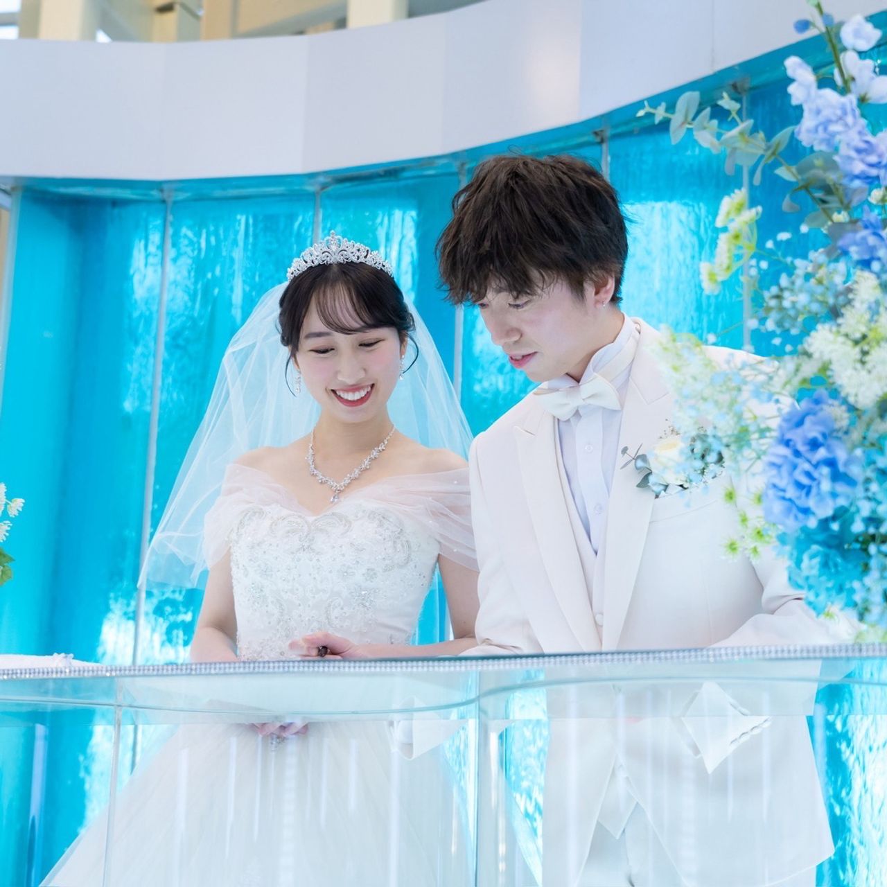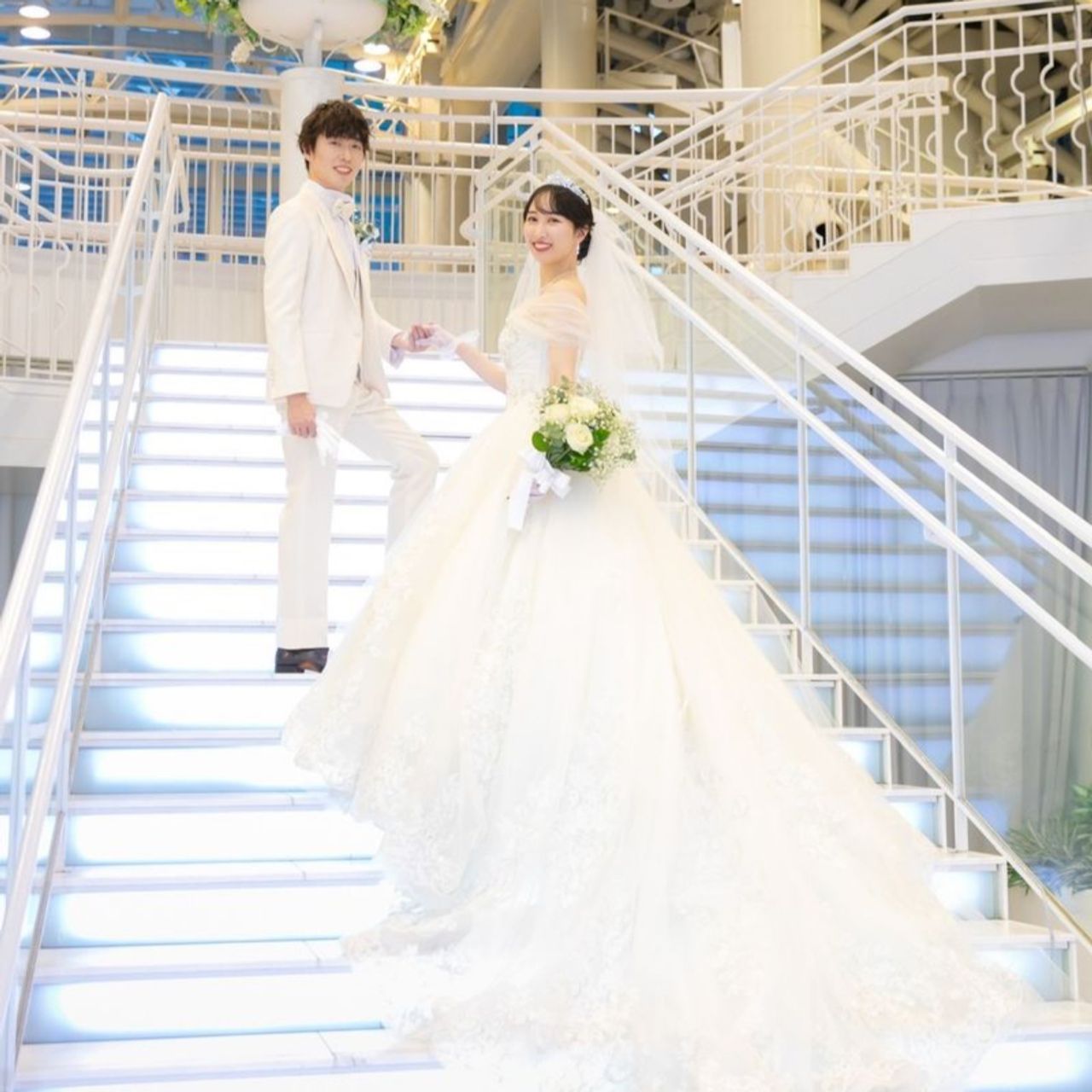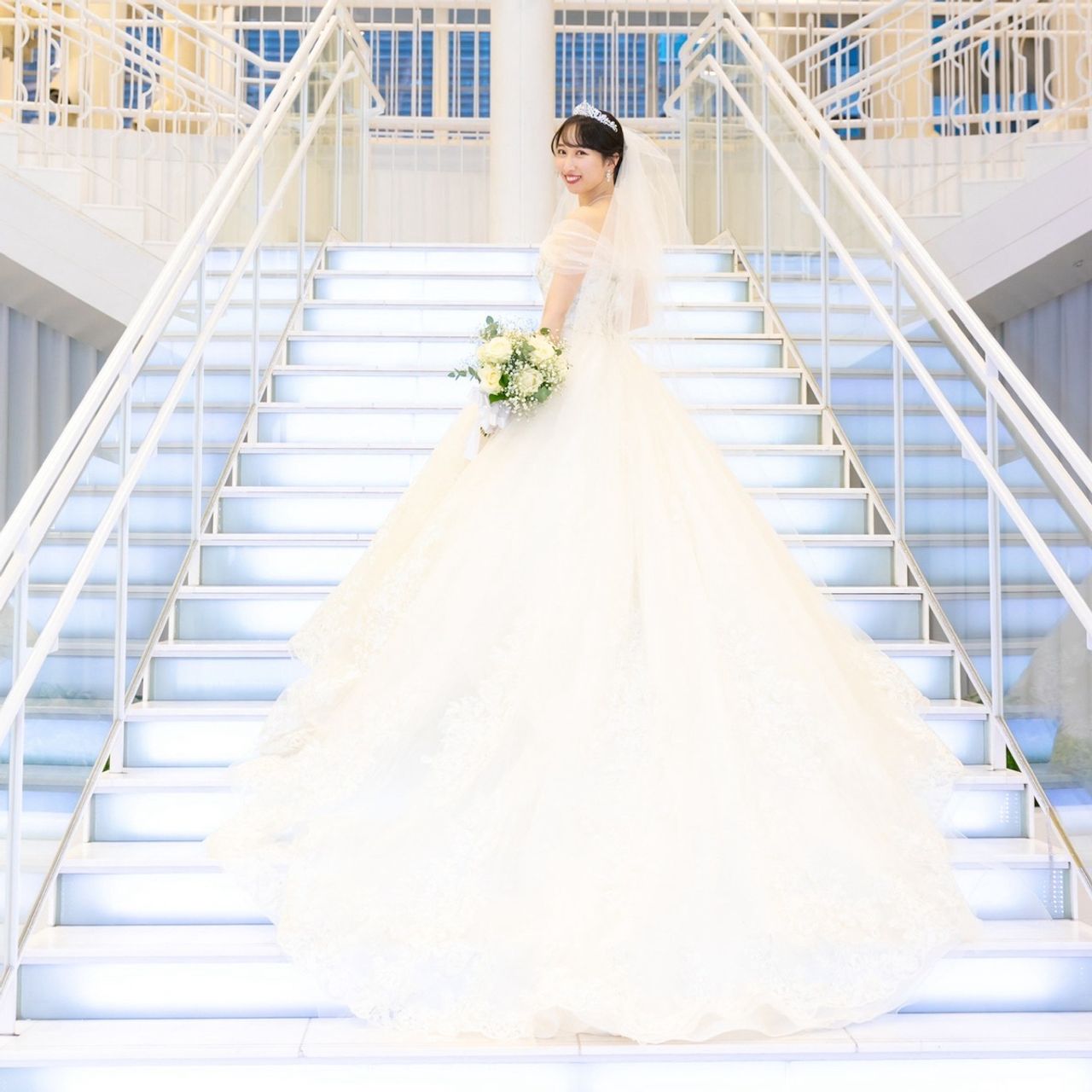 青いバージンロードと、階段での登場演出は絶対他の誰とも被りません。友人からすごく好評で「初めて見た」とたくさん言われました。