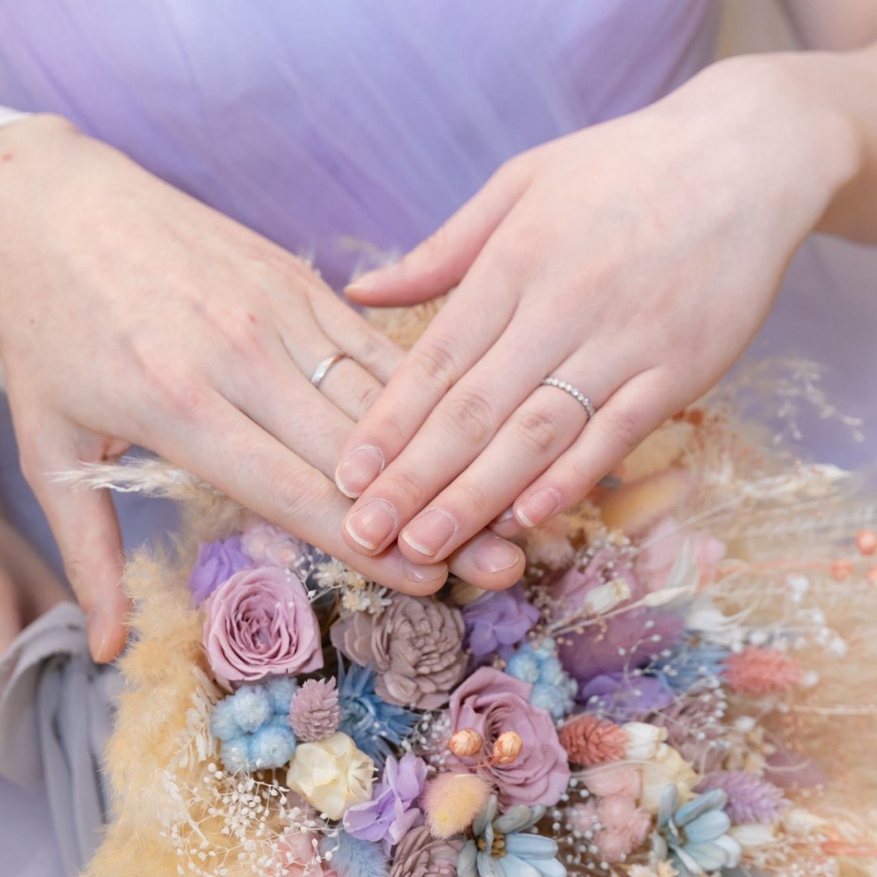 私はとにかくキラキラしたダイヤ一周のもの、夫はシンプルなシルバーに、半分磨き方を変えたデザインを選びました。