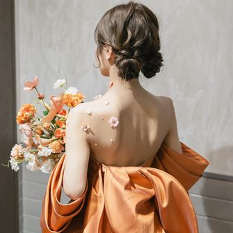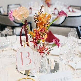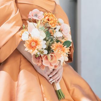 テーマカラーは、ピンクが好きなのでピンクをメインにし、秋婚だったのでテラコッタと深い赤色も使用しました。