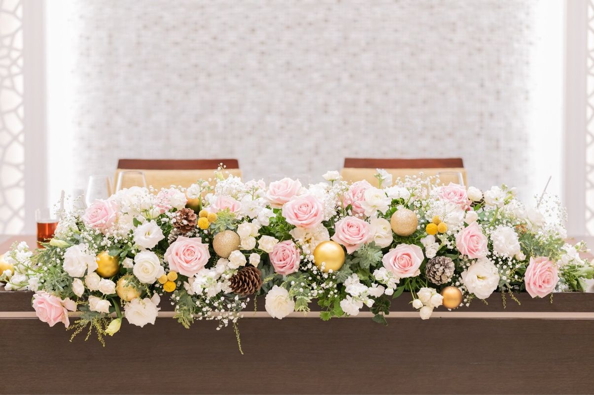かすみ草、ピンクの薔薇は絶対入れたかったので、指示書を作成してイメージに近い雰囲気になるようにお願いしました。