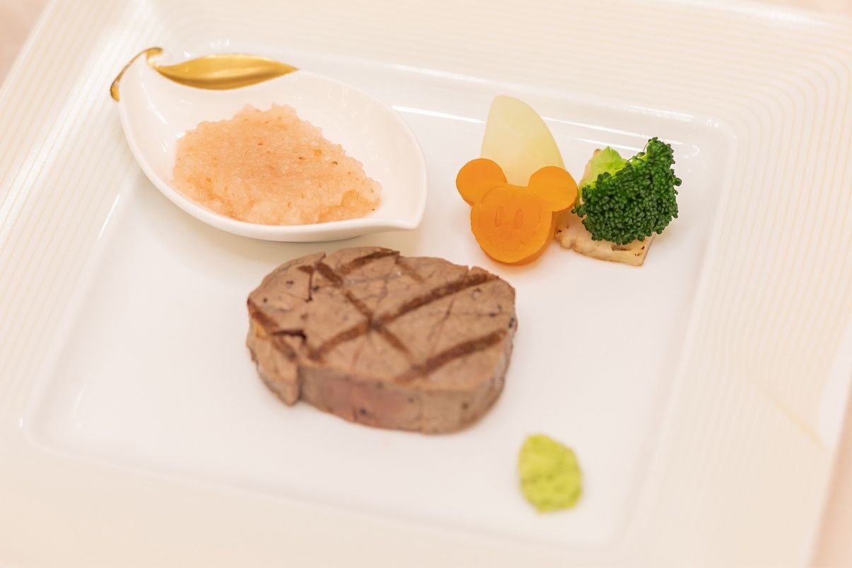 ゲストが1番楽しみにしてると思っていたので、オマールエビや国産牛が出るコースを選びました。お肉料理に添えてある人参はミッキーにしてもらいました。ゲストの皆さんから美味しかったと言って貰えて嬉しかったです。