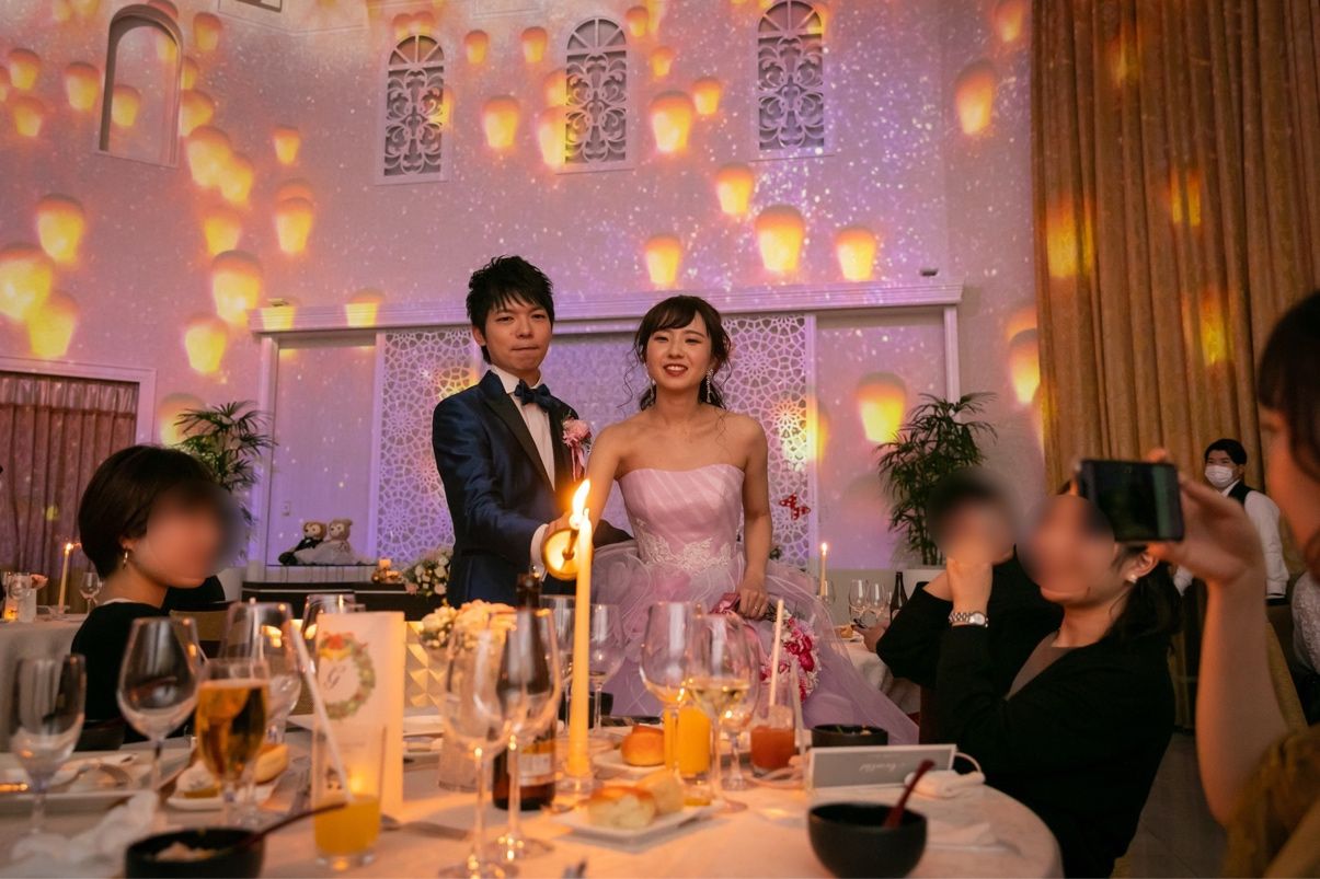ディズニーみたいな雰囲気を出すことです。ランタンのプロジェクションマッピングはまさにぴったりな演出でした。私たちはプロジェクションマッピング時にキャンドルサービスもしました。I see the light の音楽が会場の雰囲気とベストマッチすぎて満足のいく演出が出来たと思います。