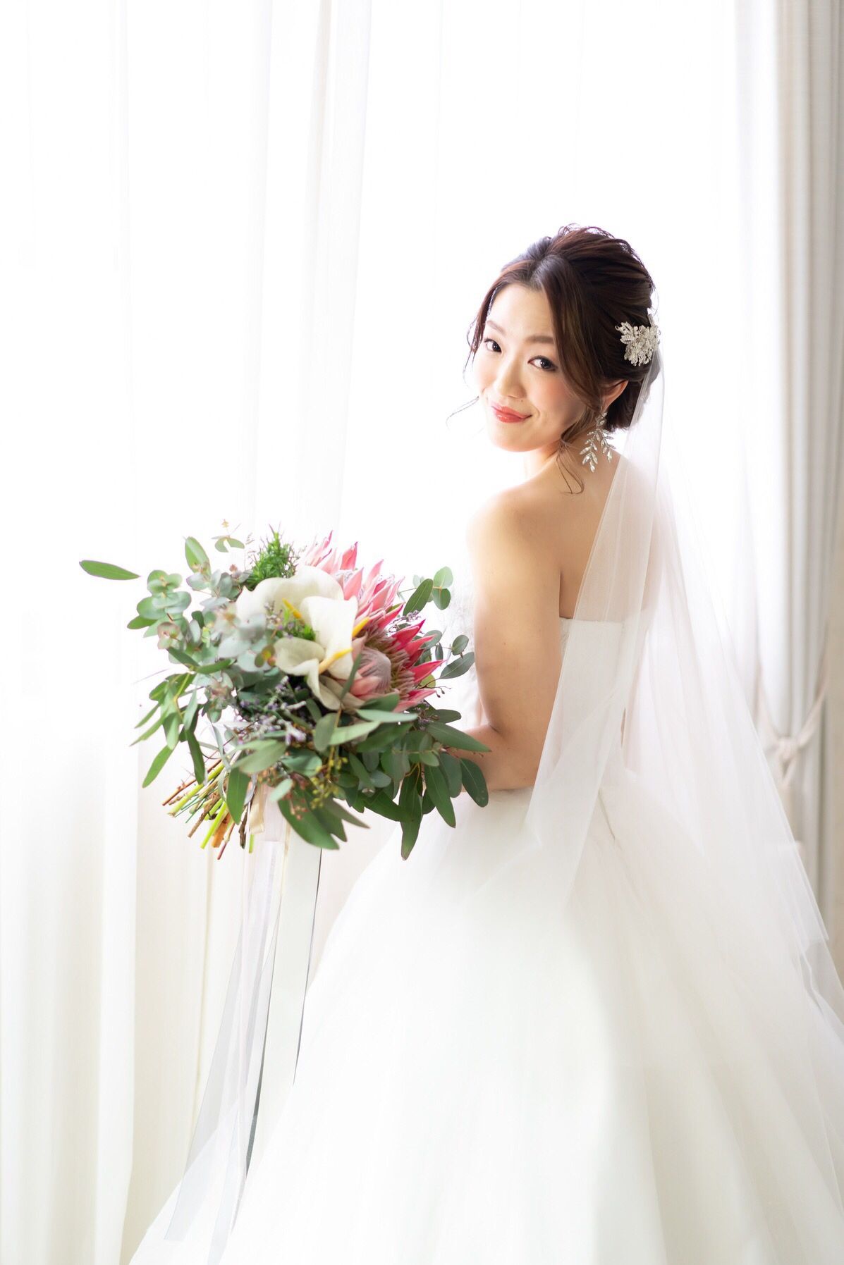 挙式、披露宴、お色直しで3パターンヘアを変えたので、いろんなパターンができました。まとめ髪も下ろした時も、ハイライトが動きが出ていて良かったです。
