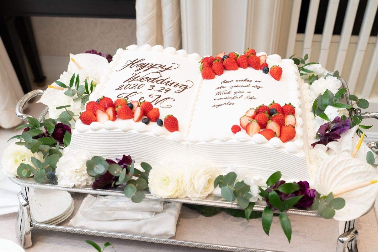カタログの中から、2人の意見が一致したものにしました。ブック型のウェディングケーキでした。