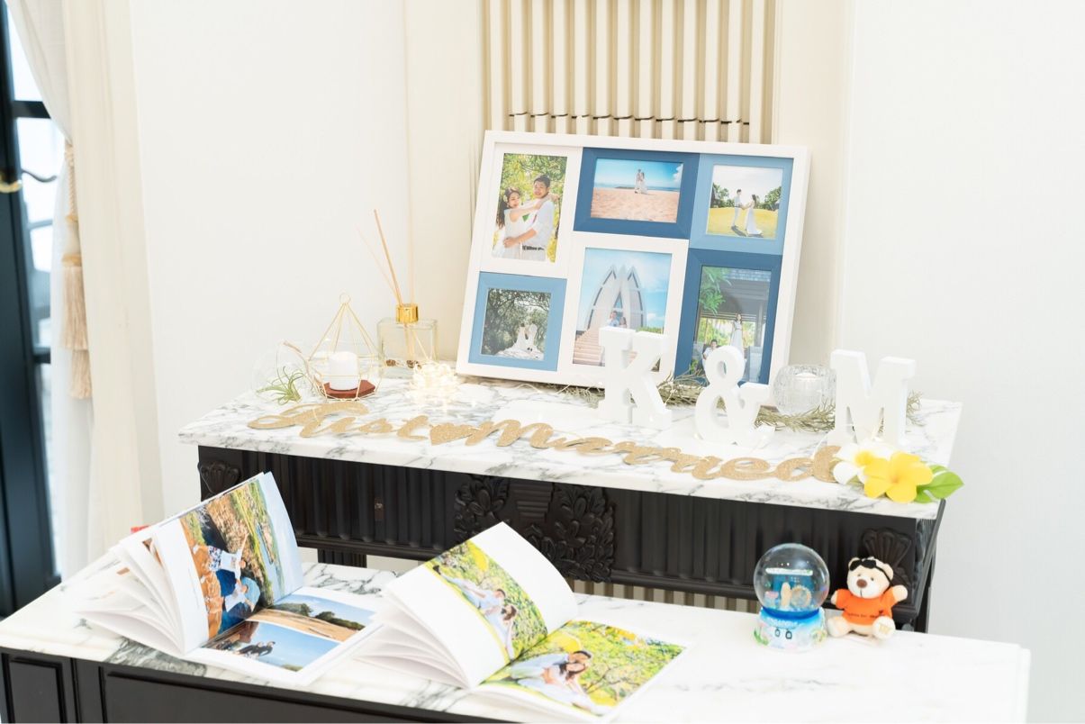 装花などリゾートをイメージして考えました。先に新婚旅行に行ったので、そこで買ったアイテムなども飾りました。