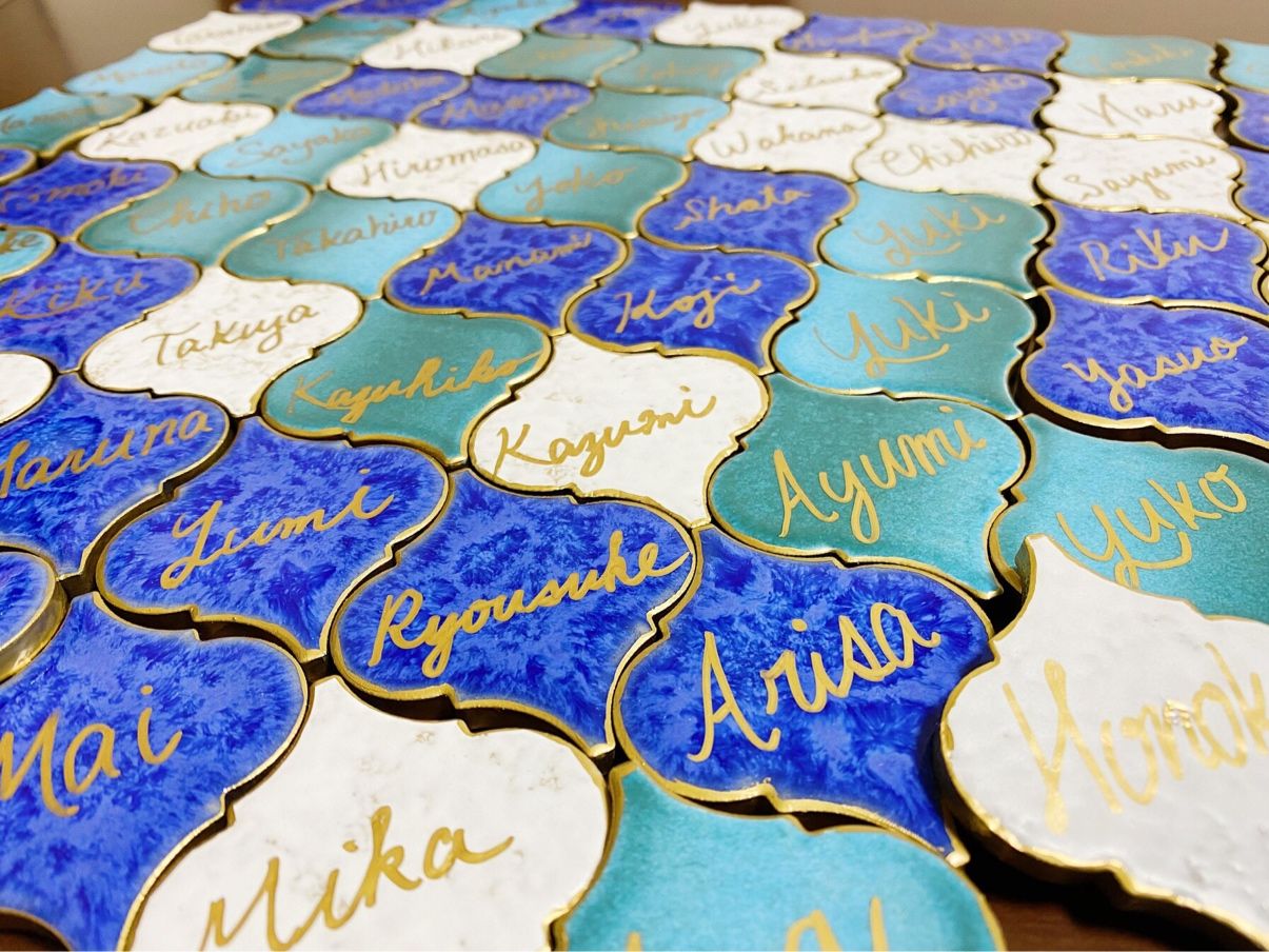 自分で用意したもの→席札、招待状の宛名書き、プチギフト。