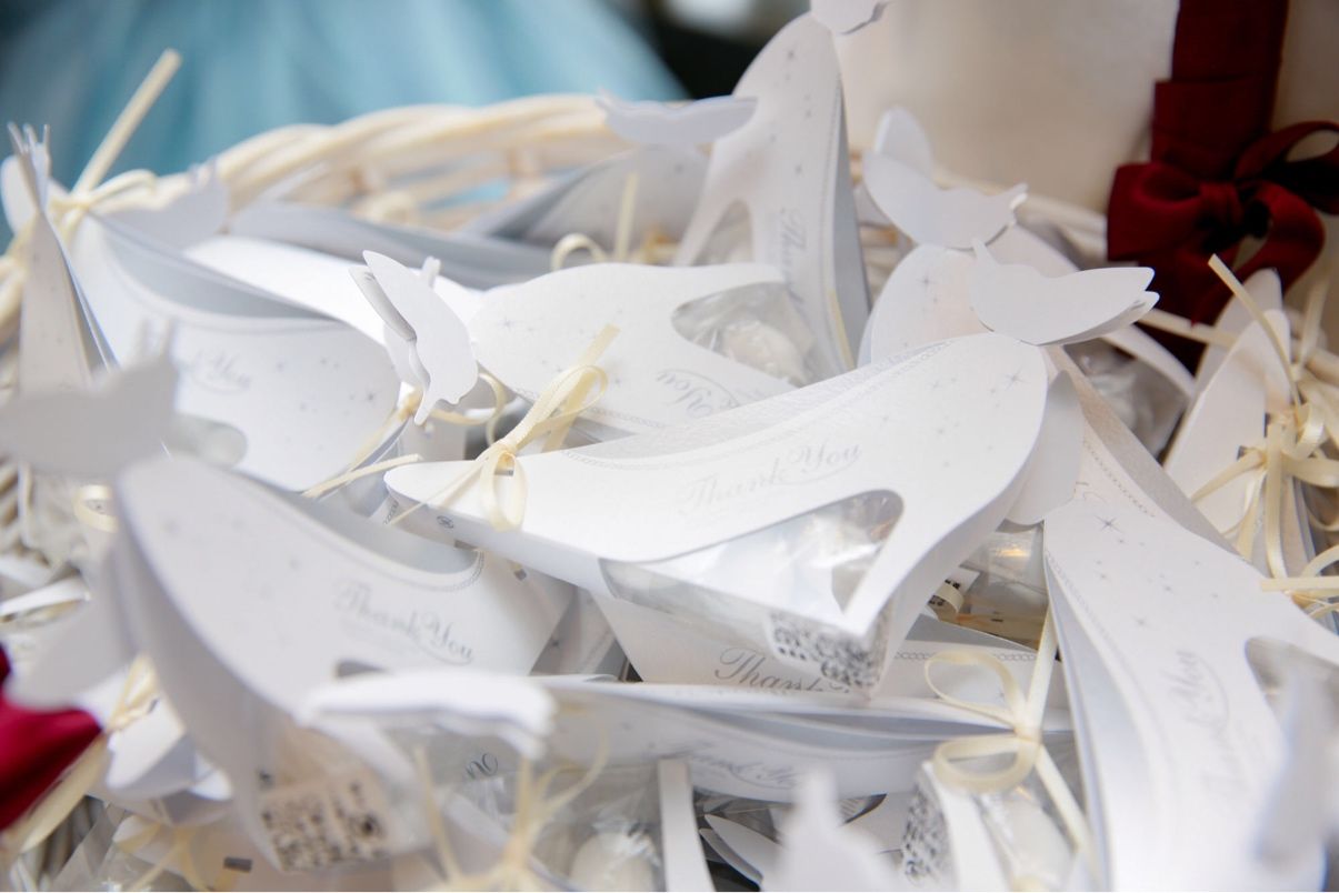 幸せのお裾分けという意味をもつ「ドラジェ」はフランスの結婚式では定番という事を知り素敵だったので、プチギフトに取り入れました♡大好きなシンデレラのガラスの靴の様な物が見つかり嬉しかったです♡