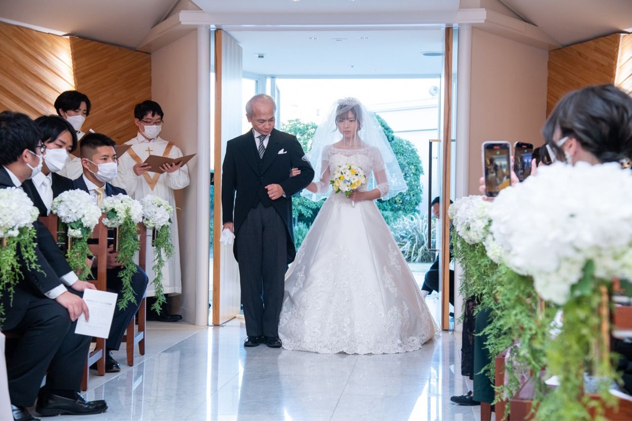 光を多く取り入れる構造により、チャペル全体が明るかったです!また、外には緑が多く広がっているので、親族や友人と温かみのある写真を撮ることができました。