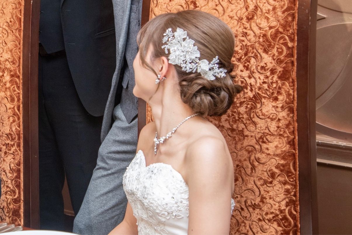 挙式時はティアラ、披露宴ではサイドの飾り、お色直しではお花を着けました。