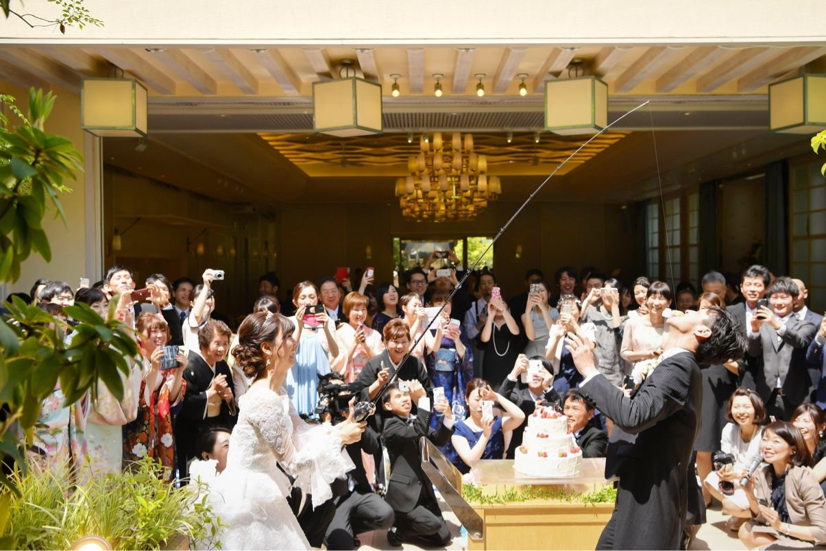 ファーストバイトは夫が釣りが趣味なので、釣り竿でバイトしました。 とても盛り上がり、「らしさ」が出てよかったと思います。