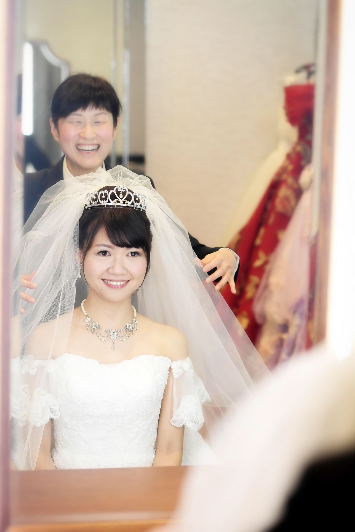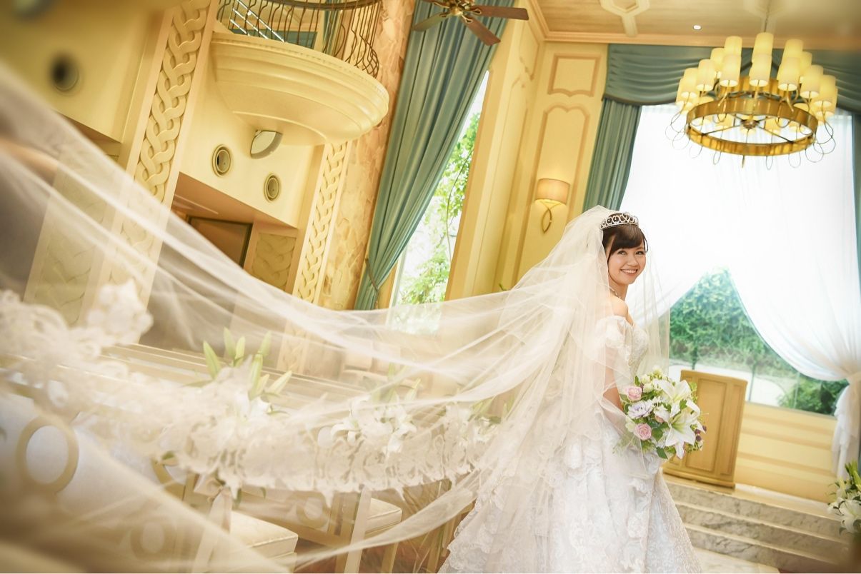 私たちは婚約期間が3年あり、やっとこの日を迎えることができたと 私は支度のベールをつけたときからもう泣いていました。笑