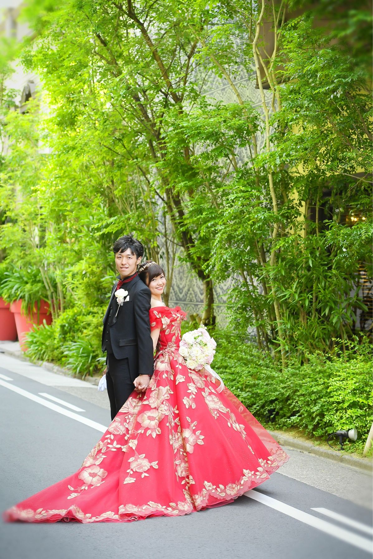 母親の希望で、お色直しを二度行いました(苦笑) ゲストの驚いた顔がうれしかったです。 そして、赤色のドレスが一番似合うとの賛辞もいただきました。