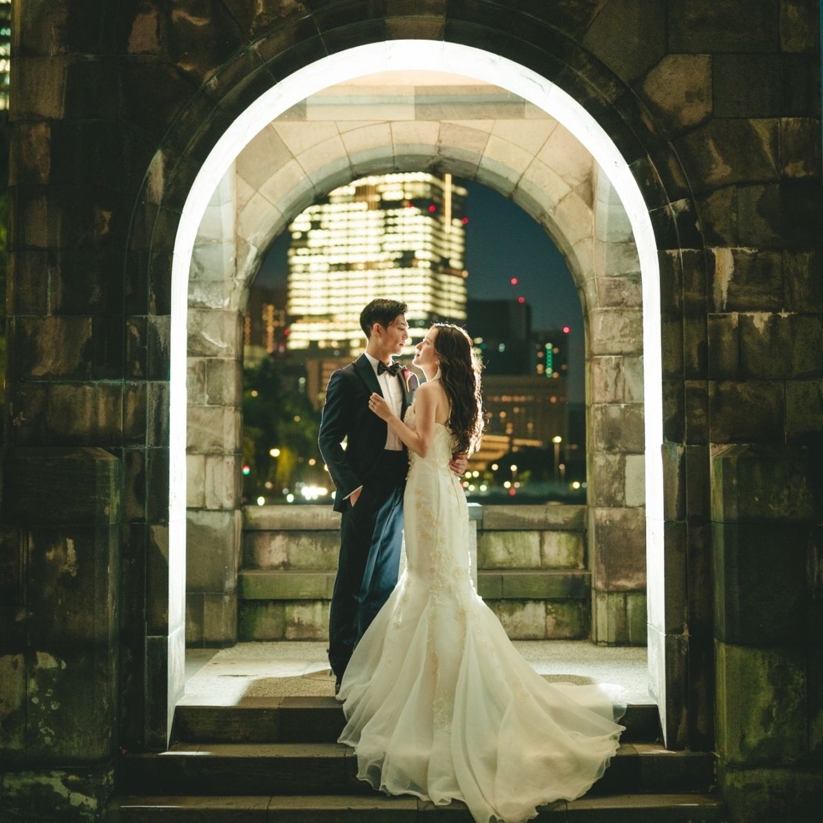 マーメイドドレスに合わせて、シンプルでスタイリッシュなスタイル