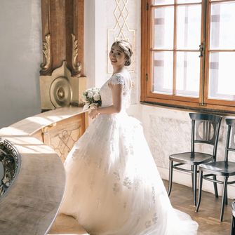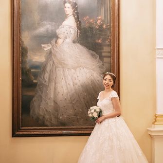 以前海外旅行で訪れたオーストリアのウィーンの街並みや建築物が好きで『お気に入りのウィーンの宮殿でロマンチックな挙式がしたい』をコンセプトに挙式ができる宮殿を探しました。伝統的なヨーロッパらしい教会がベルベデーレ宮殿にあったので、シンプルでロマンチックな挙式を行うことができました。