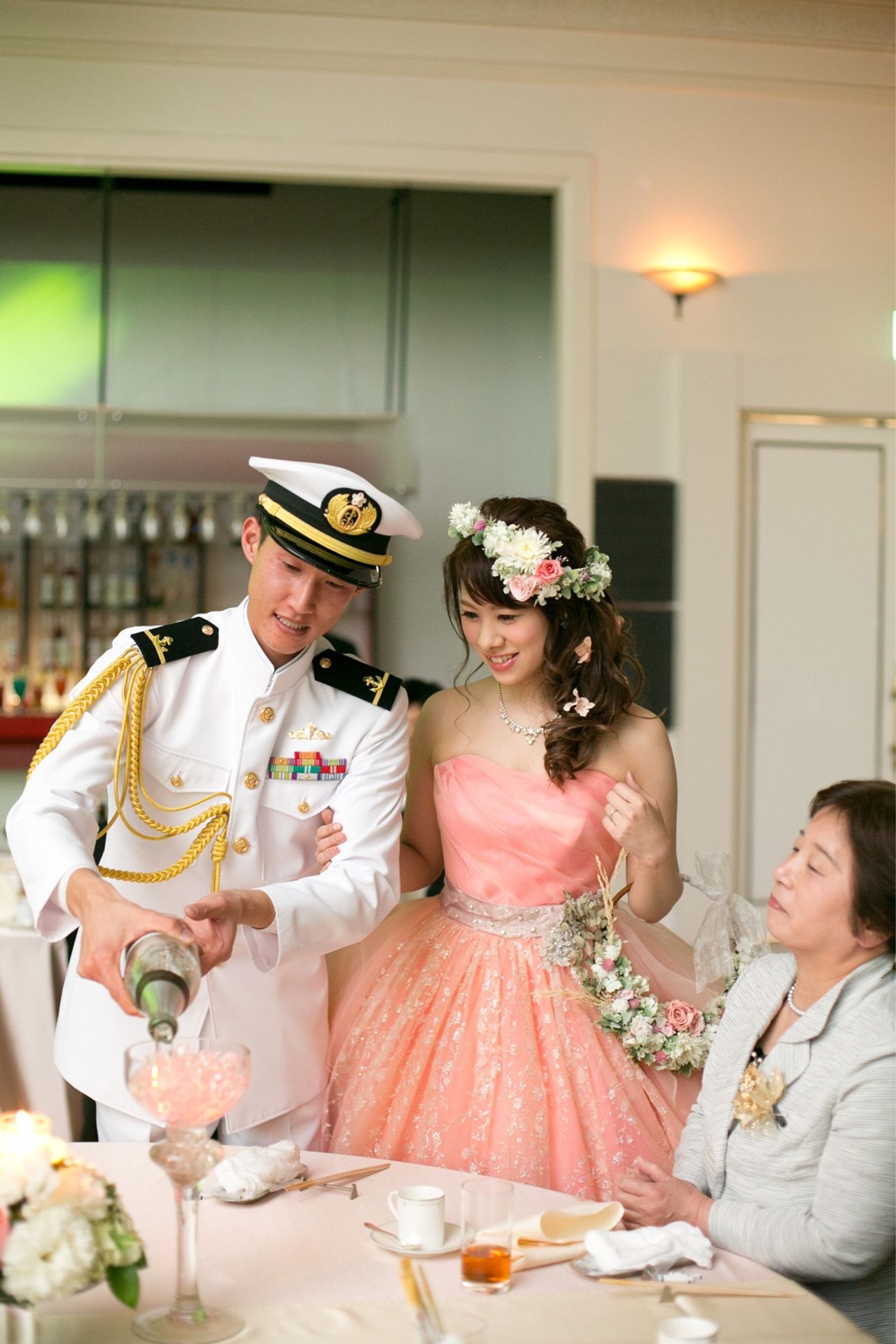 ドレスに合わせたサーモンピンクで
