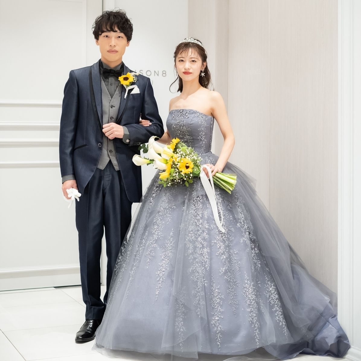 1着目と雰囲気をガラッと変えたかったことと、お姫様というよりは女王様みたいな感じにしたくて少しパープル味のあるグレーのドレスを選びました。