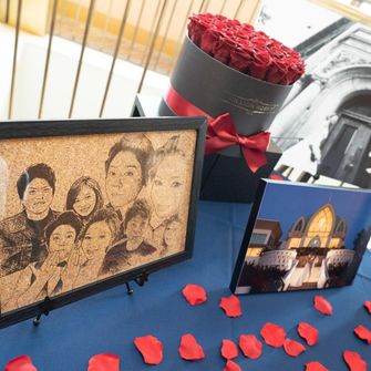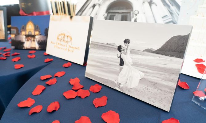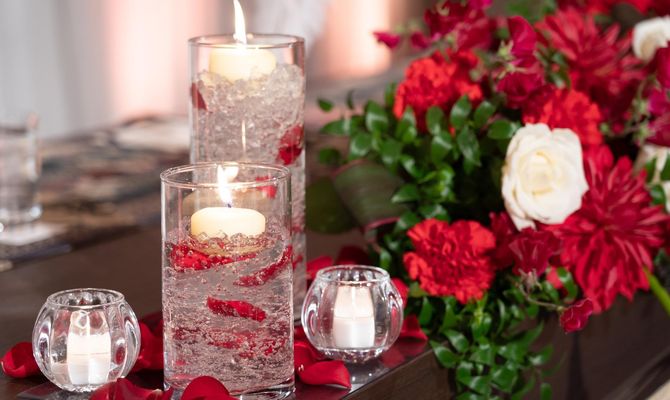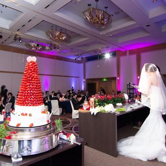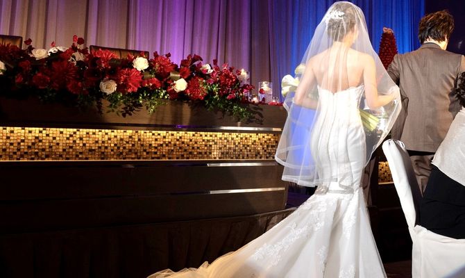 流行りに左右されないスタイリッシュな大人ウエディング。ロマンティックさも出したくて会場には、私の好きなバラの花びらをあちこちに取り入れました。
