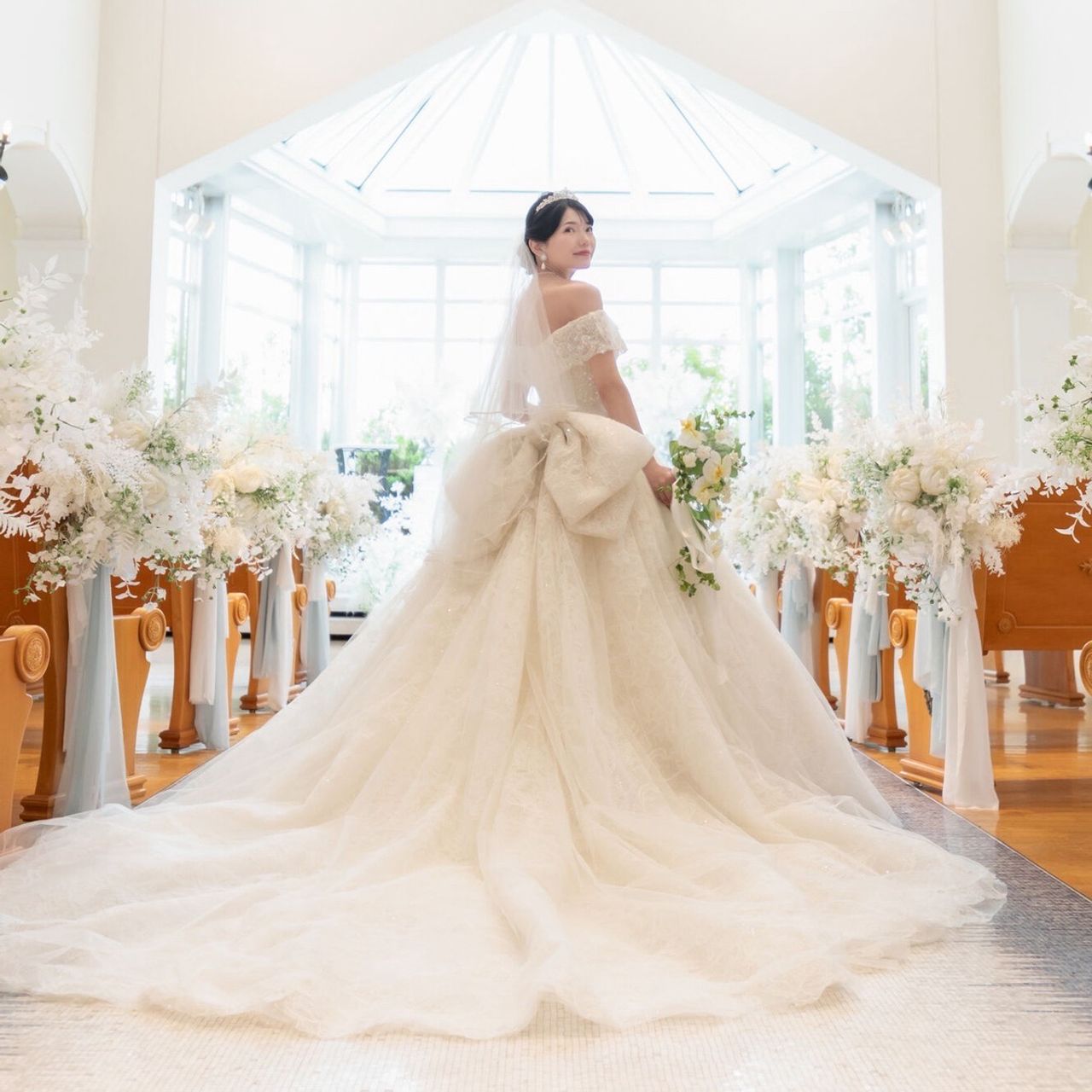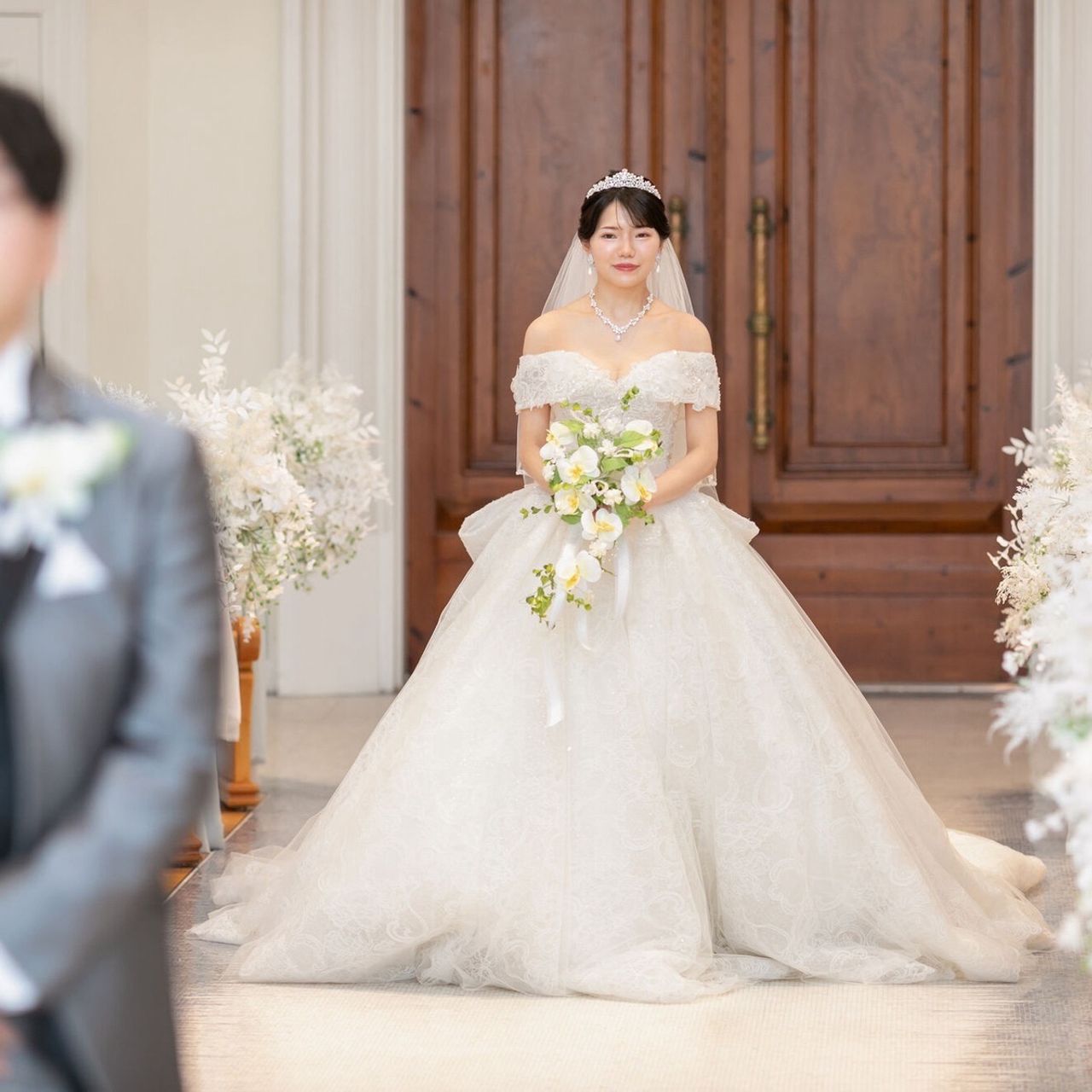バージンロードと大階段が長かったので、とてもドレスが映えました!