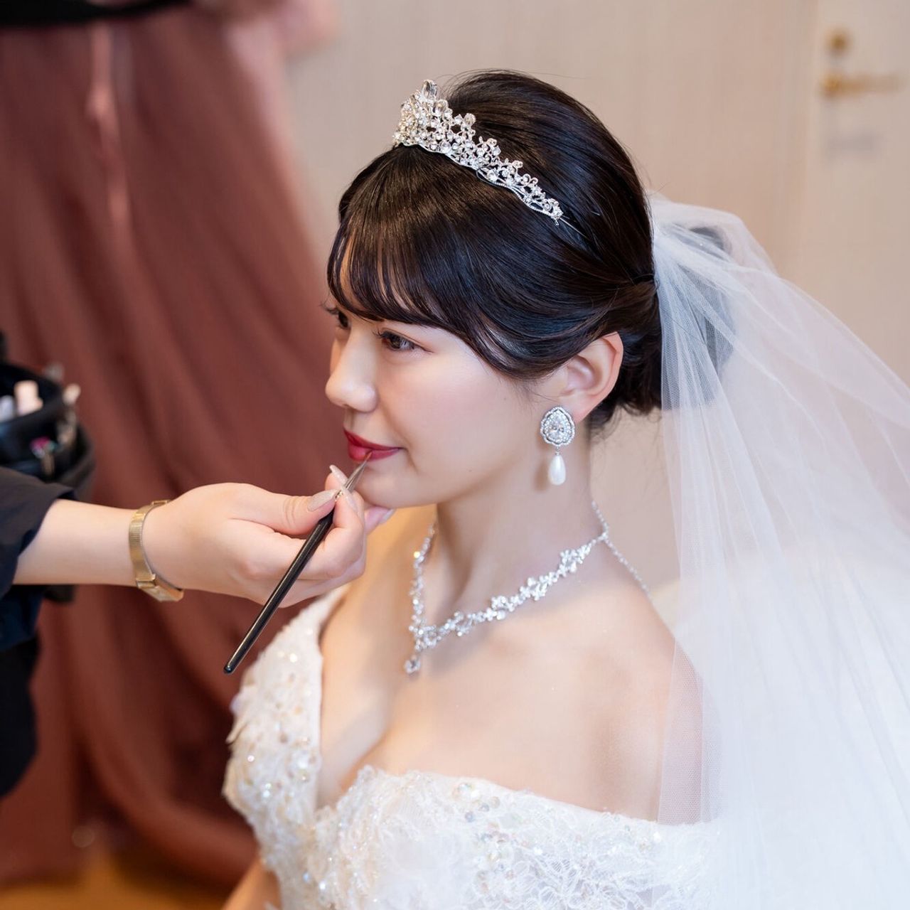 まつげはエクステをしていたので少し束をつくってもらい、リップははっきりとしたカラーで飲食しても落ちにくいものを使用しています。