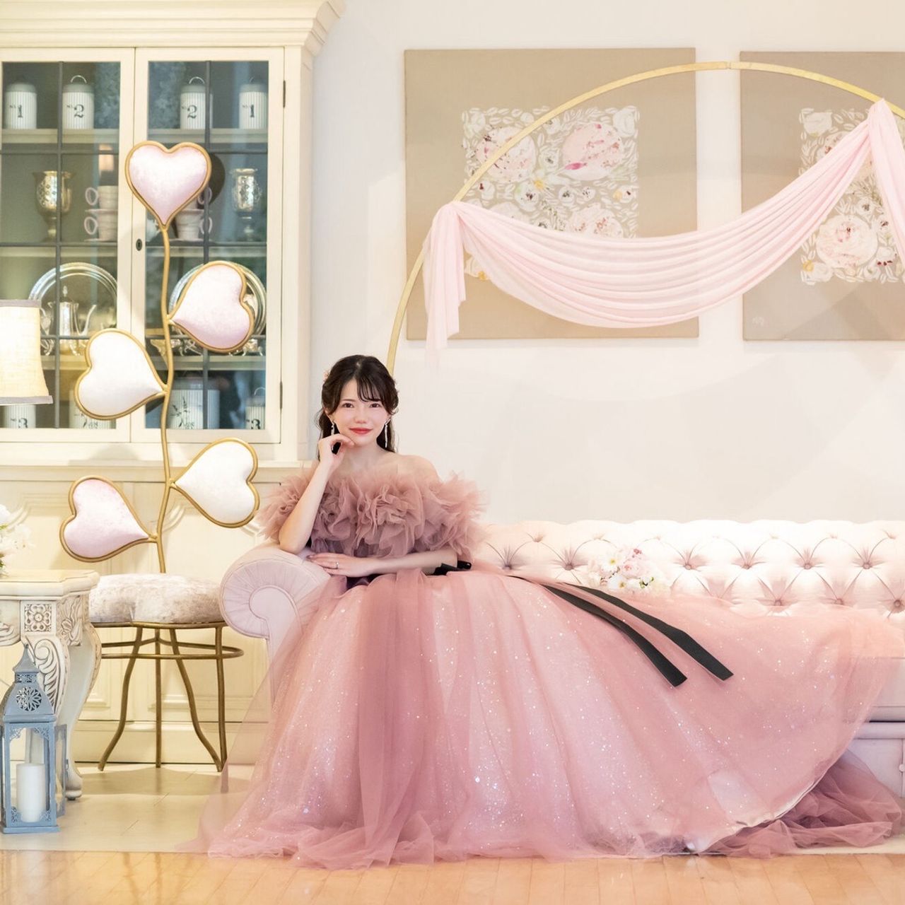 くすみピンクの絶妙なカラーが大人可愛い雰囲気で、披露宴会場にも合いそうだったのでこのドレスに決めました。