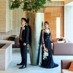 前撮り、当日の中で1番お気に入りのドレスです。ブラックは常識的に大丈夫かな…と不安に思いましたが、気心知れた親族友人のみのラフな結婚式であるため、思いきって選ぶことができました。ラフさの中にあるゴージャスさがとても素敵でした。