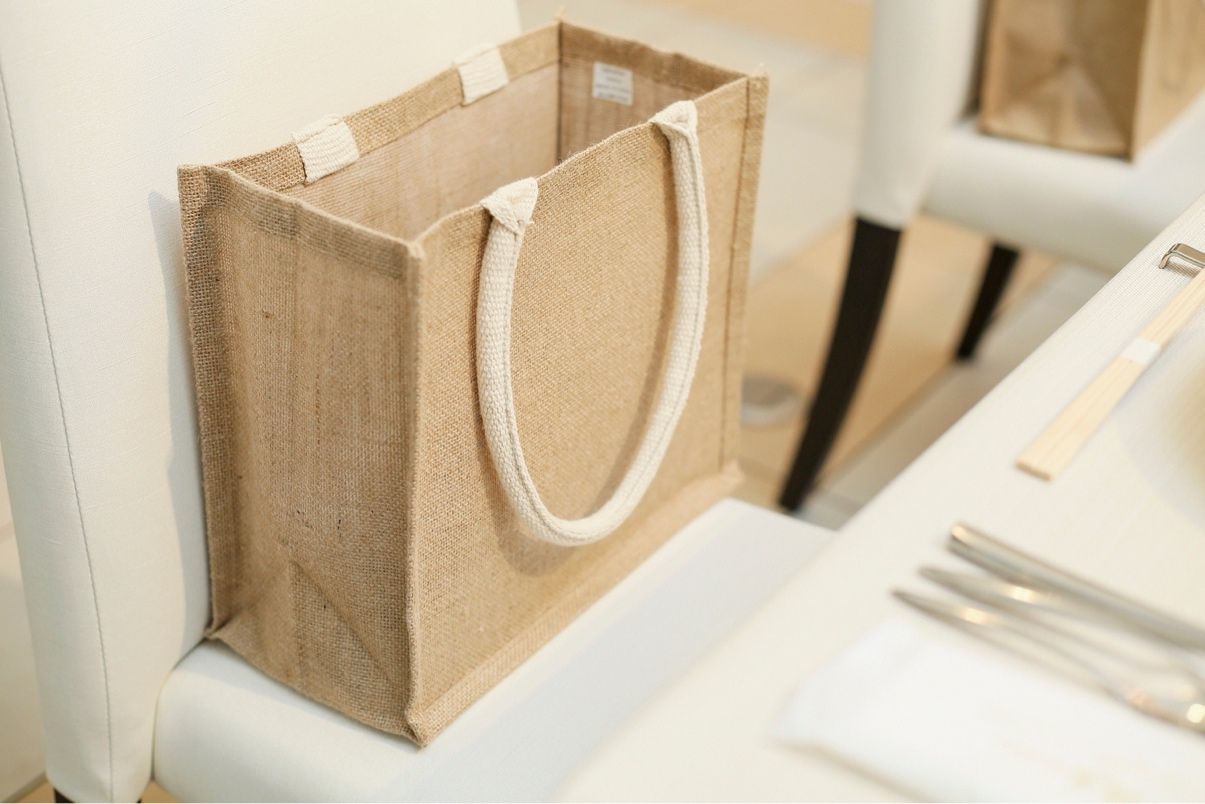 会場のものより安かったので、無印良品のジュートマイバッグを用意しました。特に女性から「式後も使える!」と喜んでもらえました。