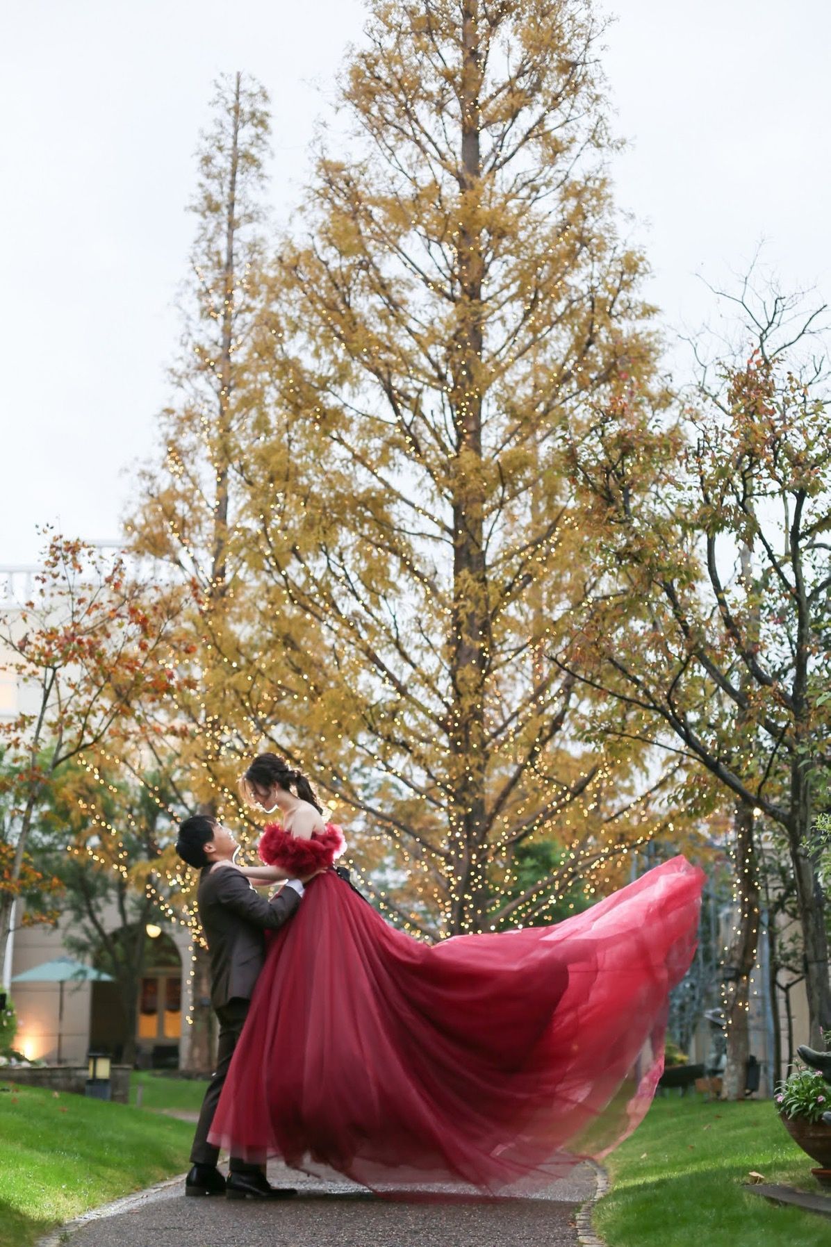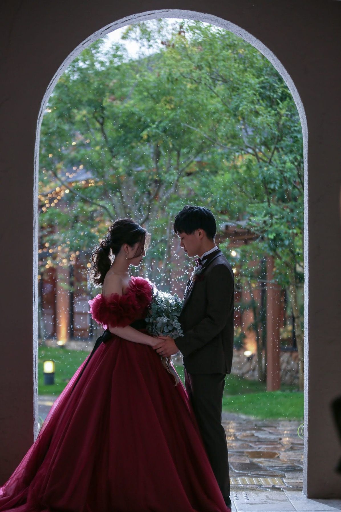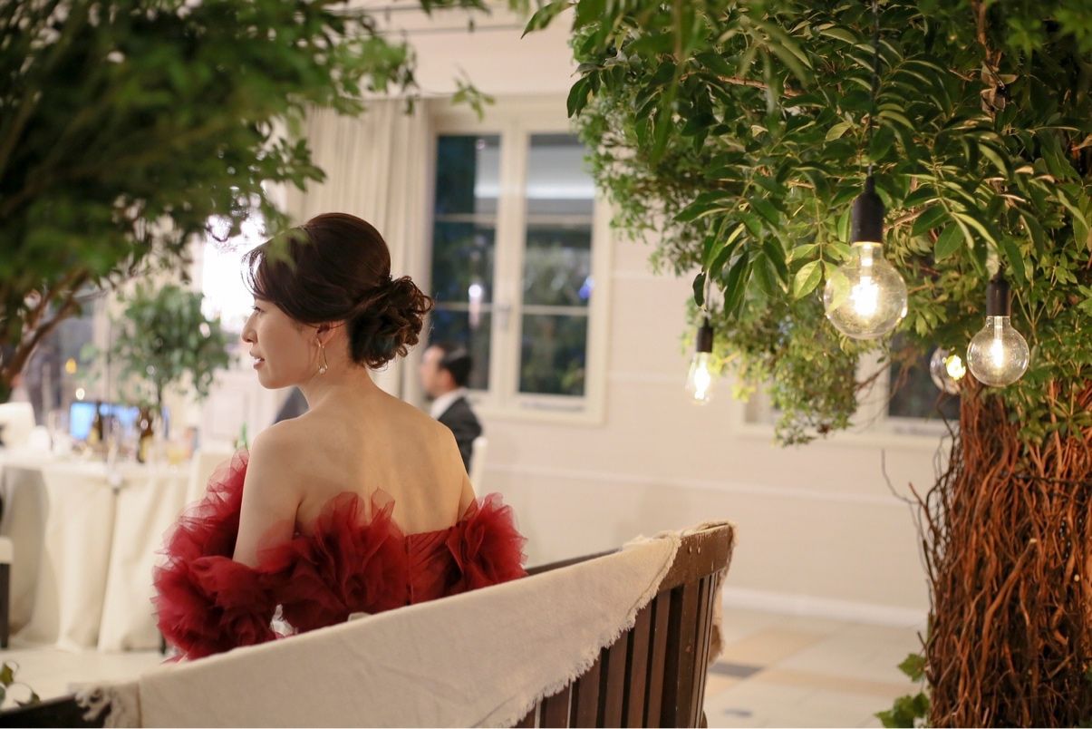 ハツコエンドウの『ベル』です。カラードレスは以前から赤色と決めていたのですが、ドレスを見た瞬間一目惚れしました。