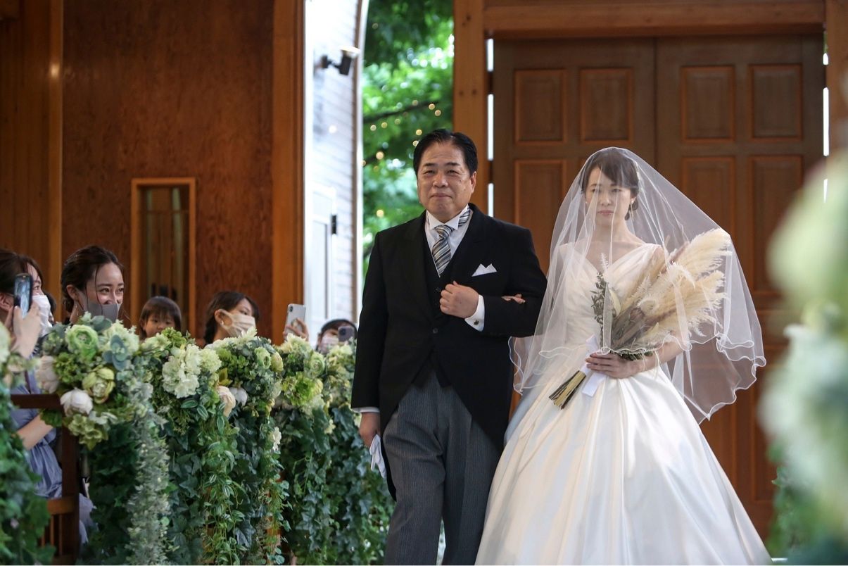 「人前で泣きたくない!」と構えていましたが、母が泣きそうになるのを見て私もつられそうになりました。バージンロードでは今まで育ててもらったことへの想いが溢れ、隣で歩く父・後ろから見守ってくれる母・前方にいる兄弟を見てとても寂しい気持ちになりました。