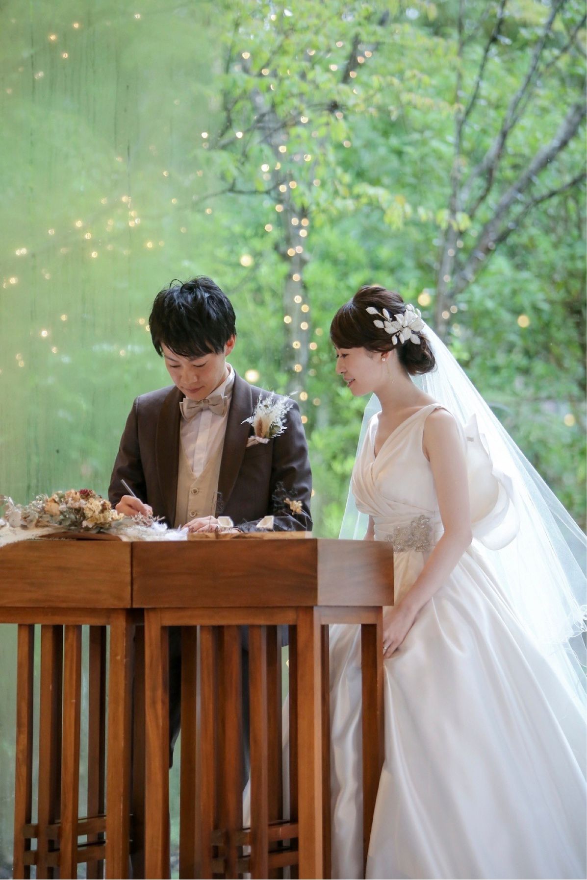 チャペルは天井が高くガラス張りになっているので、自然光が沢山入り、綺麗な写真を残すことができます。また、ガラス張りの窓から見える景色は森になっているのでプライベート感溢れる雰囲気でよかったです。もちろん、外から見てもとっても綺麗なチャペルです!