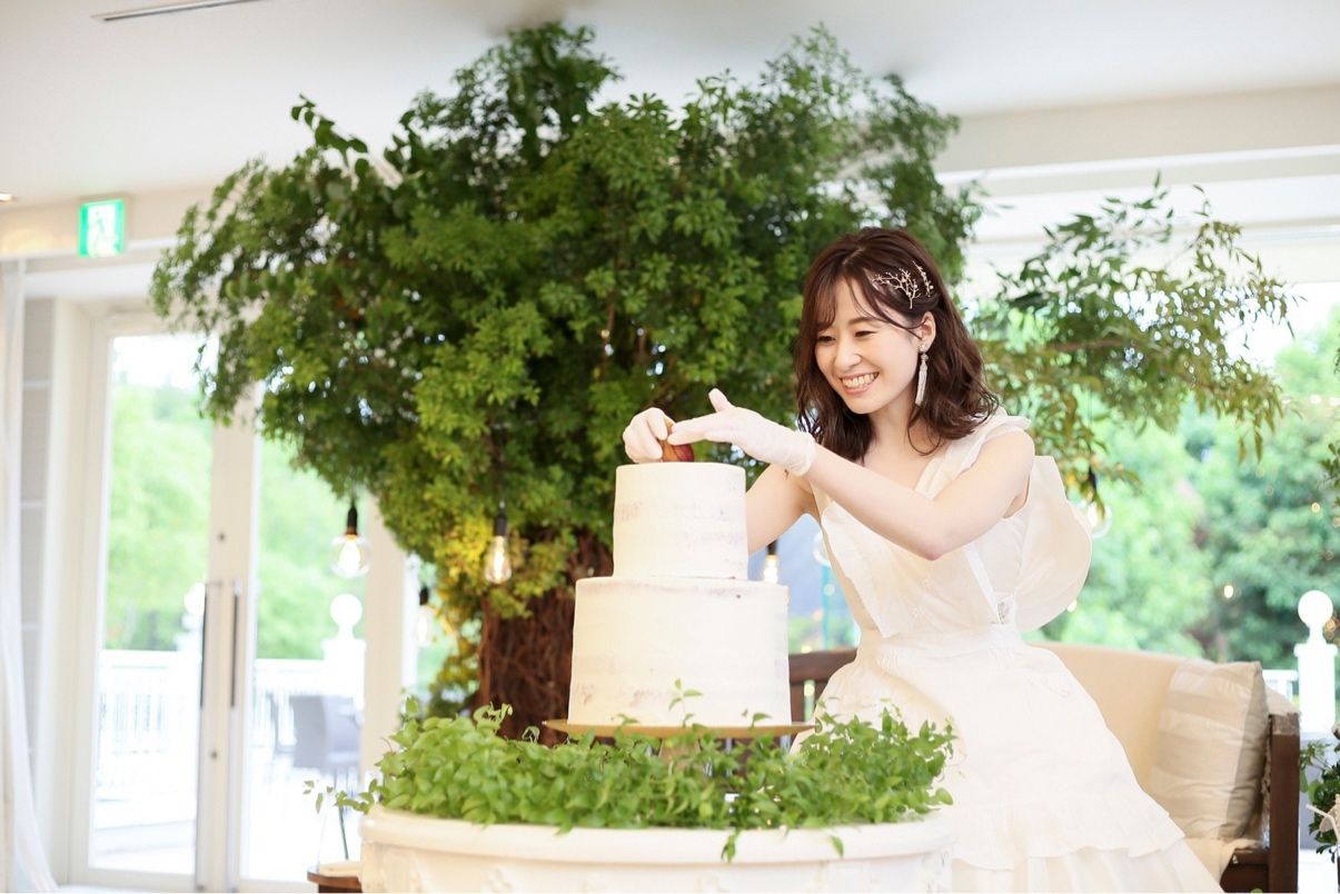 完成させたウェディングケーキを使用して、ケーキ入刀とファーストバイトを行いました。