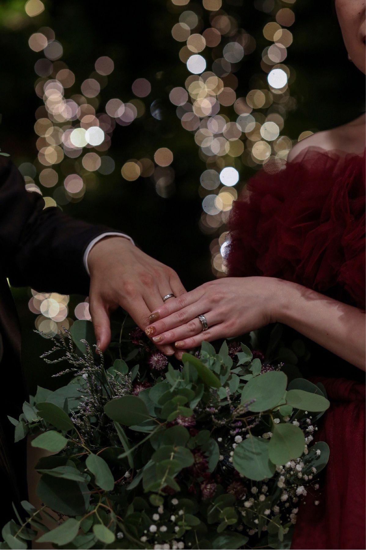 2人で話し合って婚約指輪は買わないと決めていたので、私の結婚指輪にのみダイヤを埋め込みました。
