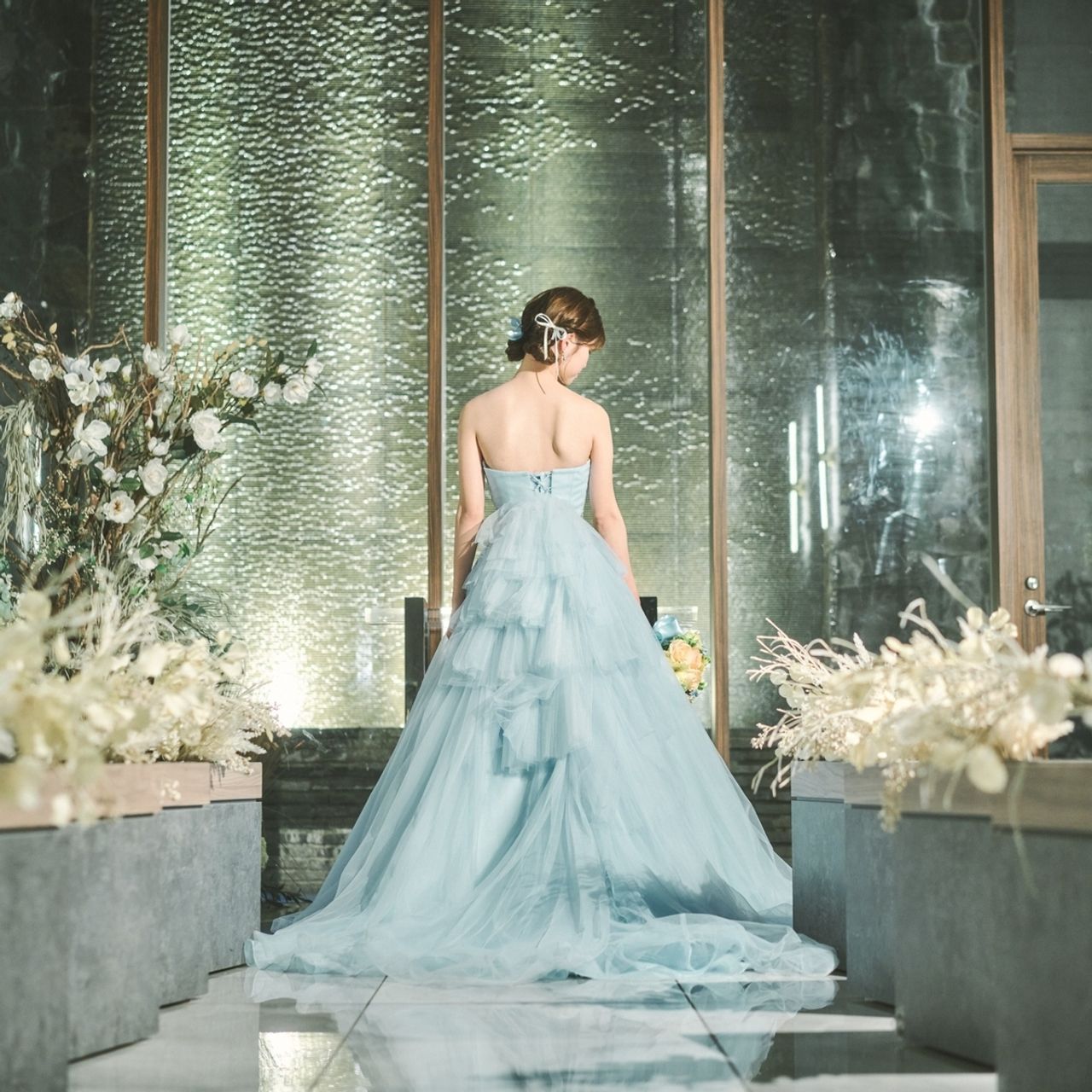 その中でも、着用時の顔写りなどが最も良かったことから、柔らかいブルーのドレスを選びました!