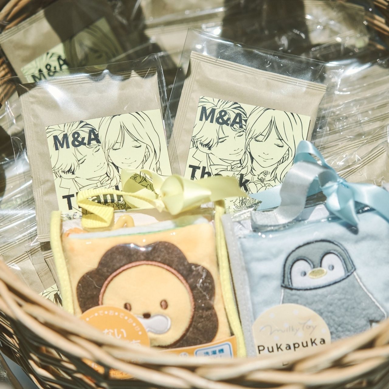 コーヒーと紅茶をセットにしたものに、自分達の似顔絵を添えてお渡ししました!