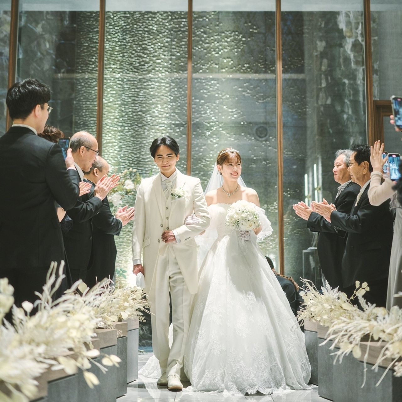 式場の決め手となった大きな滝の演出は写真映えも良く大満足でした!
