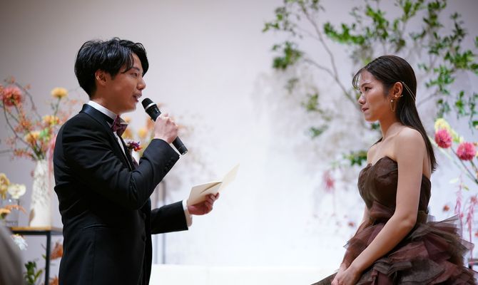 ゲスト全員と一緒に楽しみたかったので、私たち2人で作ったものを見てもらうだけでなく、ゲストに参加してもらい、一緒に作る挙式、披露宴にしました!