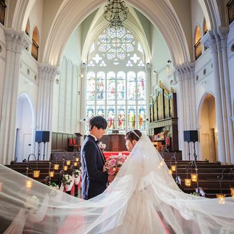 休みの日には、夫とカフェ巡りをするくらいパンやケーキが大好きなので、それらをテーマにした結婚式を行いました☻神戸セントモルガン教会(KOBE St.MORGAN CHURCH)はステンドグラスが圧巻でとてもおすすめです。