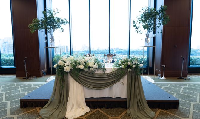 結婚式のテーマは「人生を支えてくださった方々への感謝」です。東京會舘を選んだ決め手はチャペルと立地です。見学に行く前から第一希望でしたが、見学の際にやっぱりどこを見てもおもてなしの場にふさわしいと感じ、東京會舘に決定しました。