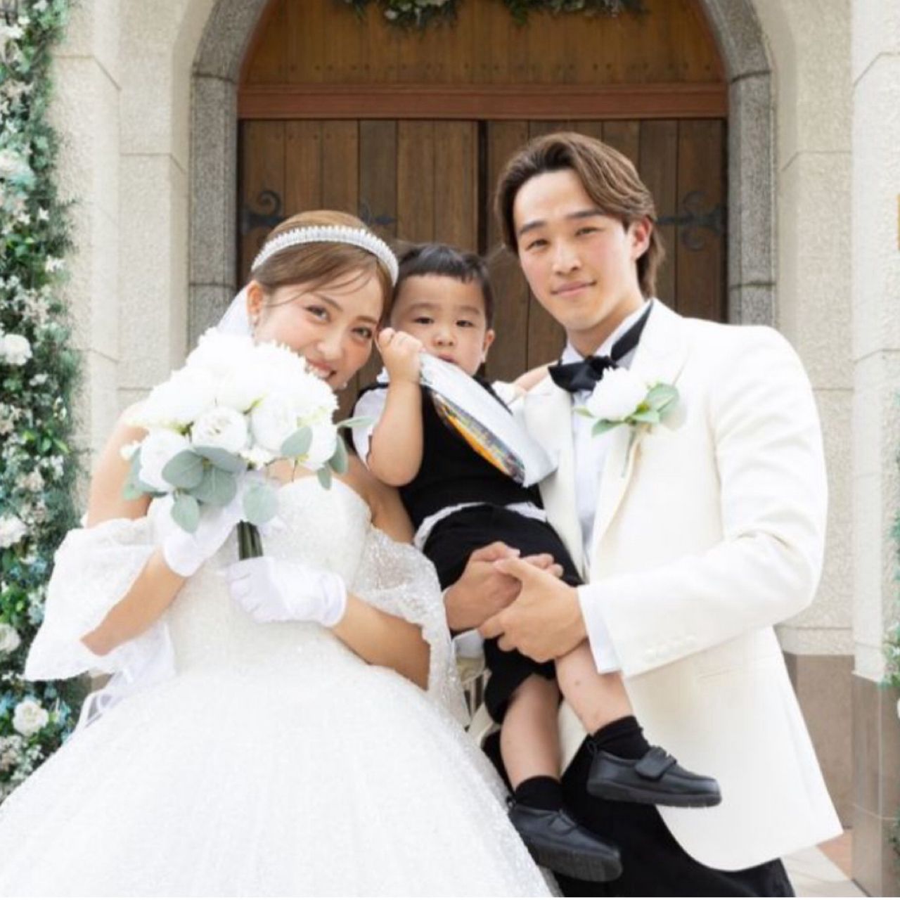 セルフ前撮りでも、私は黒ドレス、夫は黒シャツ、息子は黒スーツで合わせ、ウェディングドレスも「真っ白」で「キラキラ」なシンデレラのドレスに即決でした。