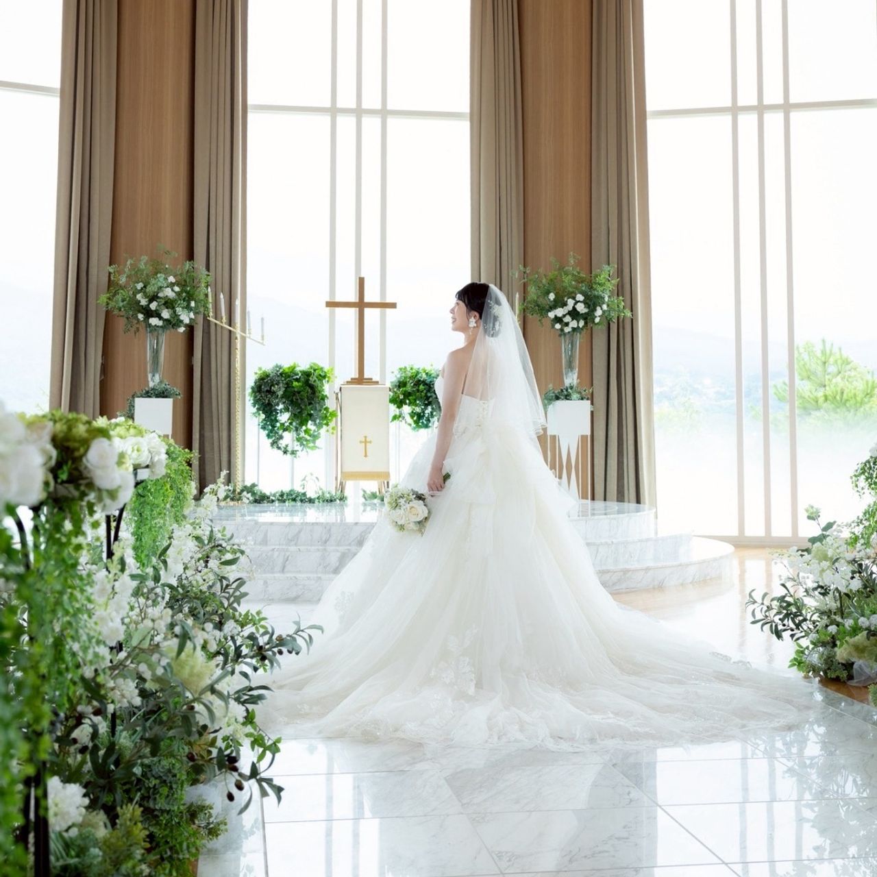 蔵王連峰を一望できるチャペルで、開放感があり、とても素晴らしかったです。タイミングよくカーテンが開き、蔵王の山々が目の前に広がった瞬間は、思わず感動しました。