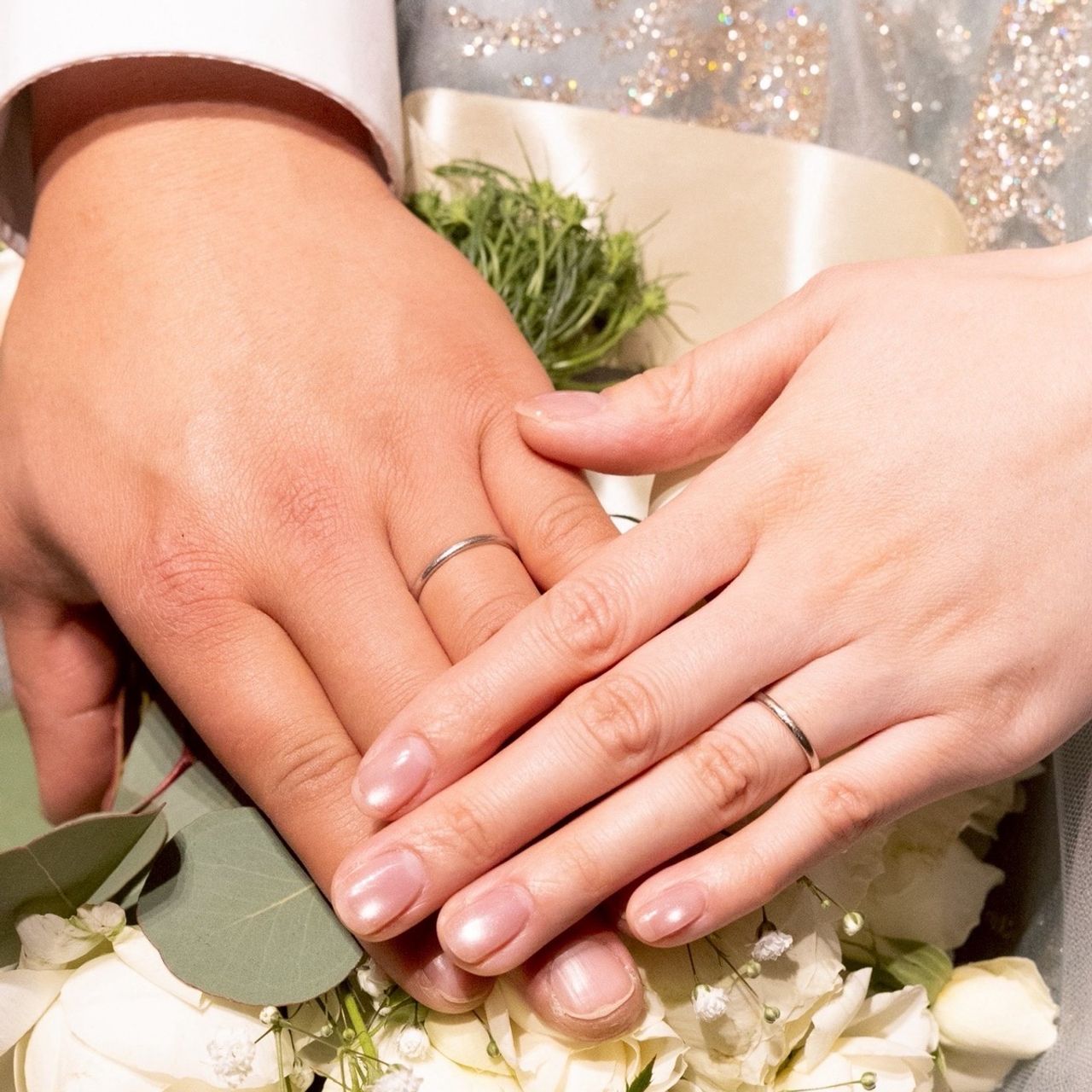 夫の指輪はイエローゴールドを選び、お揃い感を出しつつそれぞれの好みを反映させました。