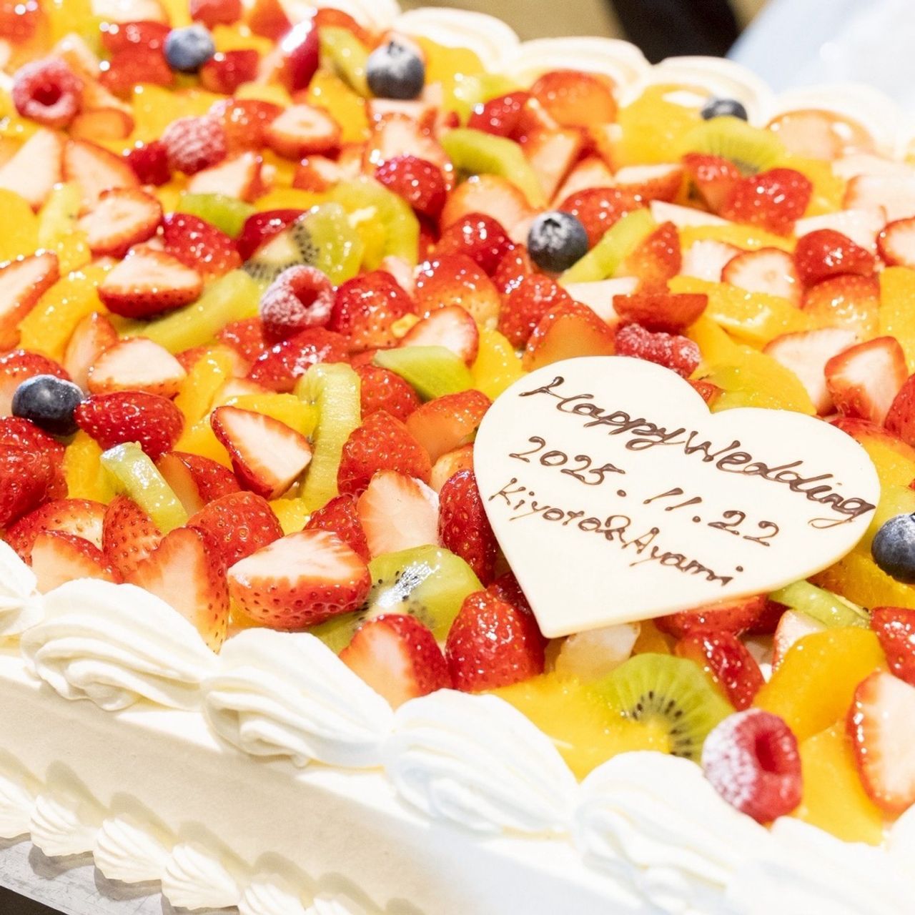 いとこと姪の二人にケーキを運んでもらう演出や、両親のお手本バイト、巨大スプーンでのファーストバイトを行い、楽しい時間になりました。